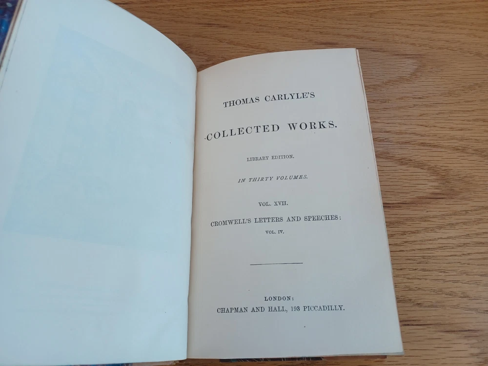 This vintage edition of Thomas Carlyle's works is a treasure for collectors! Despite some expected wear on the cover and corners, the book is well-preserved, stored in a climate-controlled space. The text remains intact and readable, making it a fantastic find for history and literature lovers. Free media mail shipping in the U.S. is a great bonus—seller is responsive if you have any questions. A solid purchase for classic book enthusiasts!