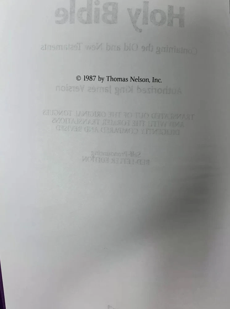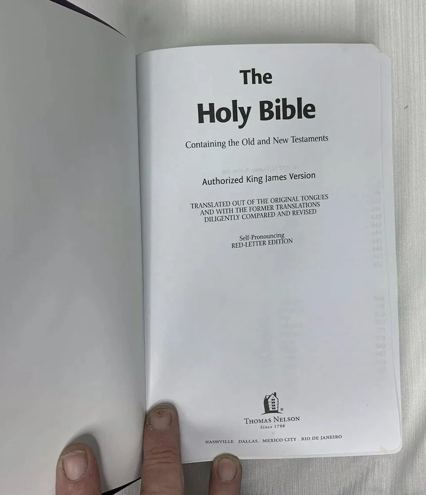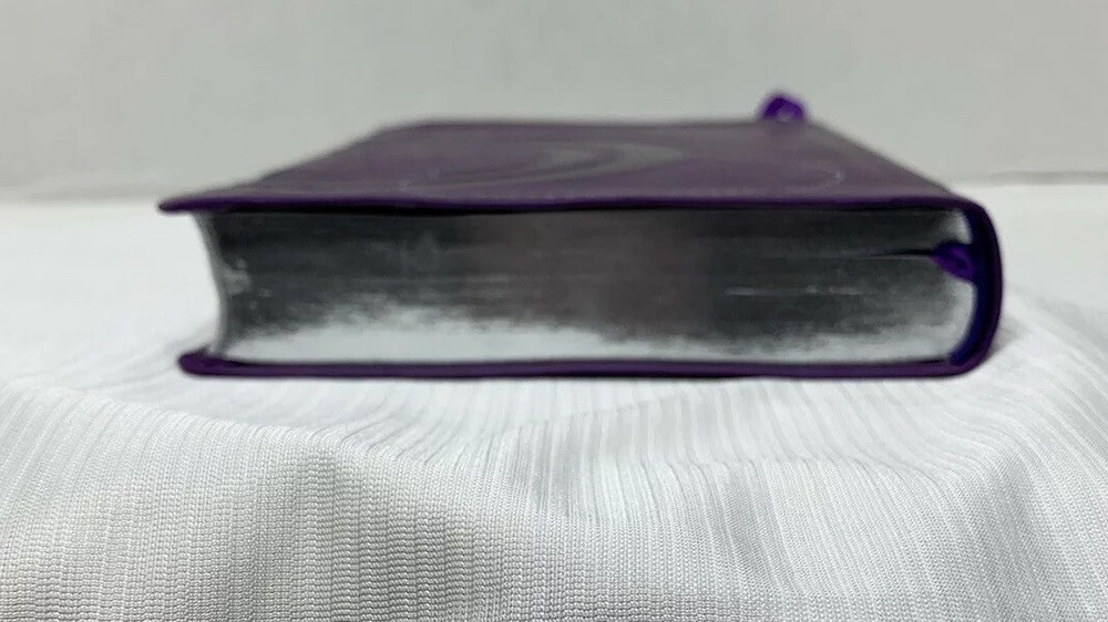 Thomas Nelson Holy Bible KJV Red Letter Silver Edge Purple Leather~ Beautiful Great gift for a Teen Very Good Condition brown stain to page edges, Please see Photos for Condition Description Thanks for Looking