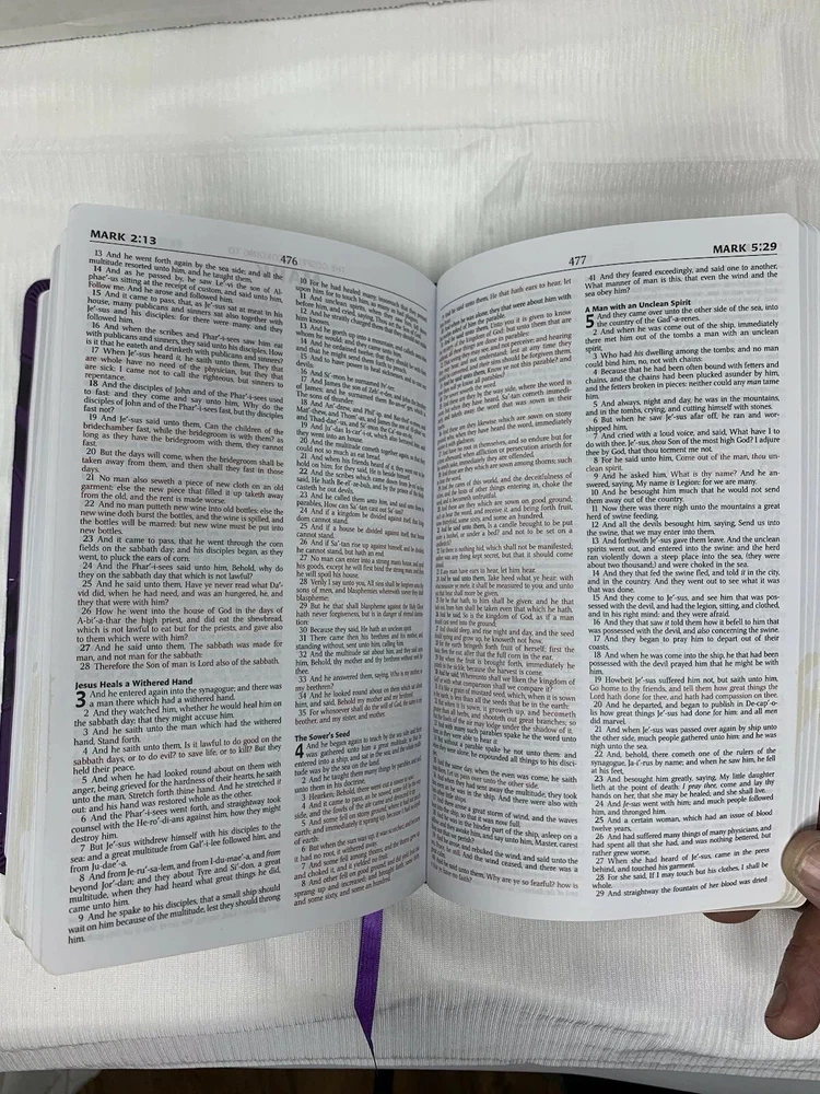 Thomas Nelson Holy Bible KJV Red Letter Silver Edge Purple Leather~ Beautiful Great gift for a Teen Very Good Condition brown stain to page edges, Please see Photos for Condition Description Thanks fo...