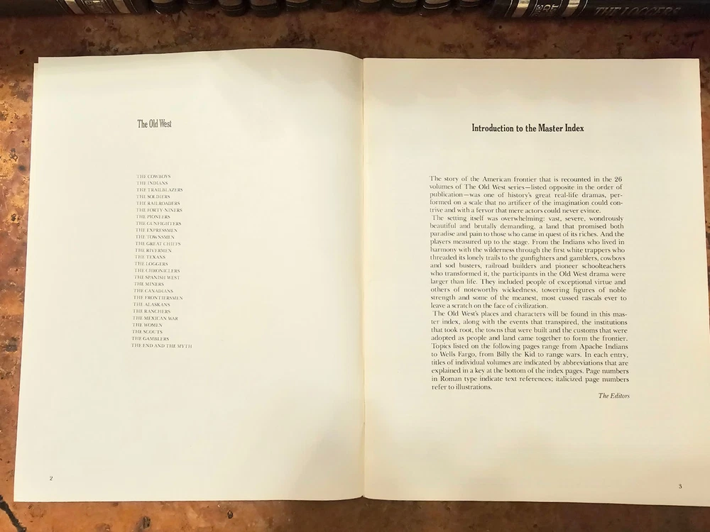 Time Life: The Old West Total of 26 books with the master index Condition: Excellent condition with the exception of a few that have some small blemishes on the covers (see pics). No pet/smoke odors, no torn pages, no stains, no markings The books were written in the 1970s. Feature a faux leather binding Any questions, please ask Thanks