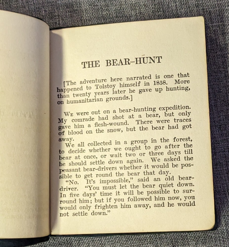 Tolstoy BEAR HUNT & OTHER STORIES Little Leather Library 1900s Collectible Items may have shelf wear from storage. The exact contents may vary from inventory lists online, please check out the photos to make sure it has all the parts you want. The items I sell are often from other people's collections and could be incomplete if I miss something when I check. Let me know if there's any issue or missing part and I can give you a discount or refund to cover it. If you notice something before buying I am happy to adjust pricing! I am happy to work with you to address anything that comes up, but to cover my bases items are sold as is. The exact items from the photos are the item you are buying unless noted. I aim to please and package my items securely! I combine shipping whenever possible! Shoot me a message on eBay with the items you want combined so we can work it out before you pay, or I can give you a shipping refund if you pay before I can make an invoice. Please check out the photos and message me with any questions you may have. :) - Nate