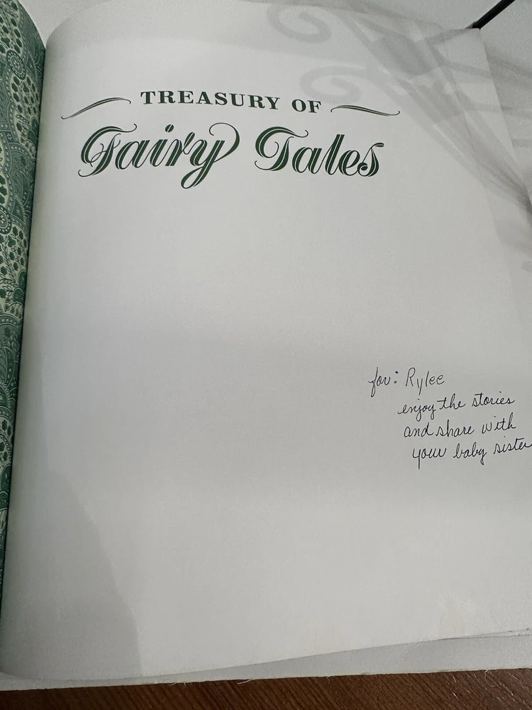 Treasury Of Fairy Tales Illustrated Book Hardcover 2011. 14 stories. 19 x 12” x 1”. Does have an inscription as shown but otherwise in great condition. 1548