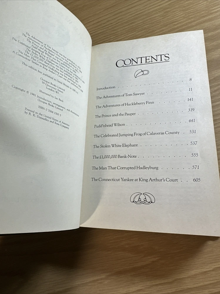 This beautiful faux leather bound book is a complete and unabridged edition of Mark Twain's Treasury of World Masterpieces. Measuring at 9.5 x 6.25 x 2 inches and weighing 2.58 lbs, this book is perfect for young adults and adults alike who enjoy adventure, history, and world literature & classics. It features 799 pages of classic literature, and is illustrated by Ian Beck. The fourth impression of this book was published in 1982 by Octopus Books Limited, and it is written in English. The book series is part of Treasury of World Masterpieces and it has special attributes as illustrated. The book does not have any ex libris, and it is not modified. The cultural region of this book is American Literature and it is a novel. The topic of this book is Classic Literature.