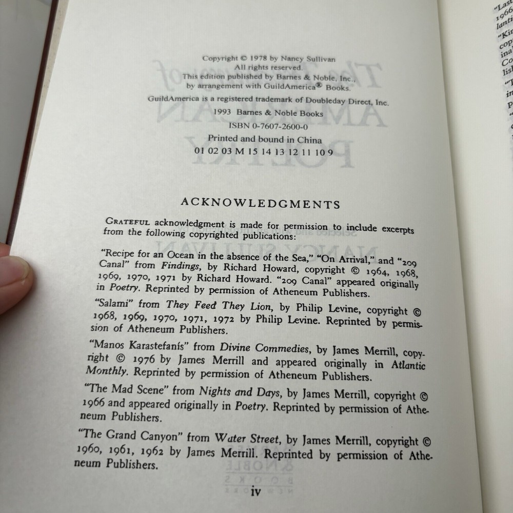 Treasury of American Poetry (1993, Barnes & Noble Leatherbound) American Poets. Condition is Like New. Shipped with USPS Media Mail....