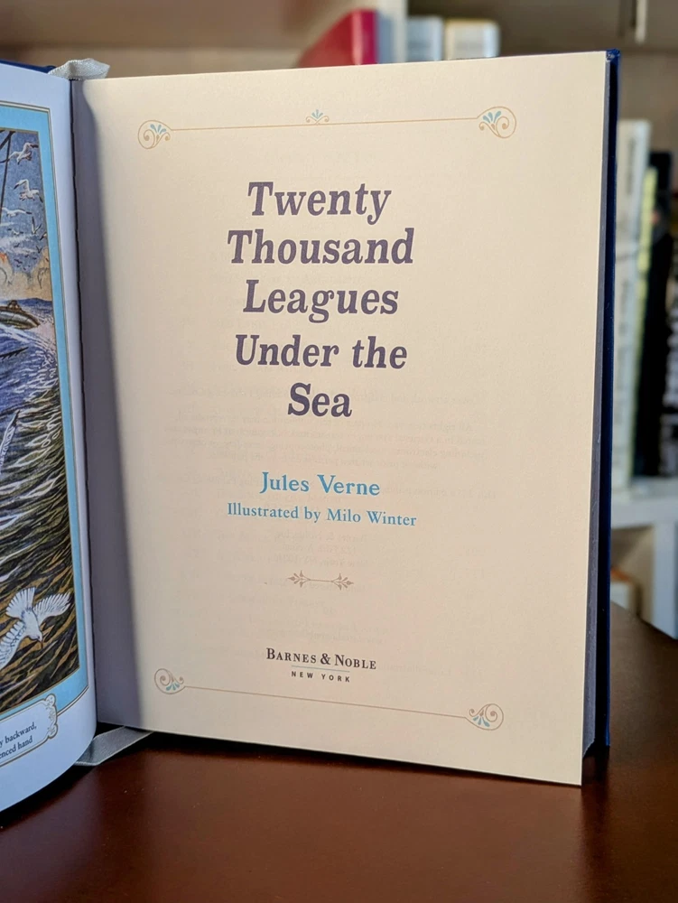 Twenty Thousand Leagues Under the Sea Jules Verne Barnes and Noble Leatherbound Classics Edition with silver gilt edges and bookmark ribbon. Bonded leather binding per barnes and noble. It does not state which translation it is. Condition - Shows some wear with minor flaws, but otherwise in very good condition. This edition was originally published in 2016 by Sterling Publishing for Barnes and Noble. This copy was purchased brand new in 2022. Please look at the pictures carefully to determine what you believe the condition of the collectible is, since text descriptions are not possible to fully articulate every aspect of the book. Free Shipping in a sturdy box.
