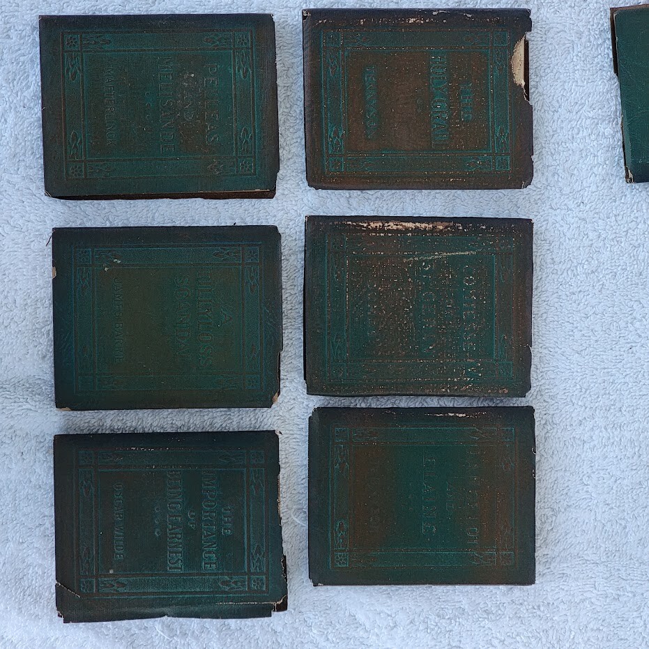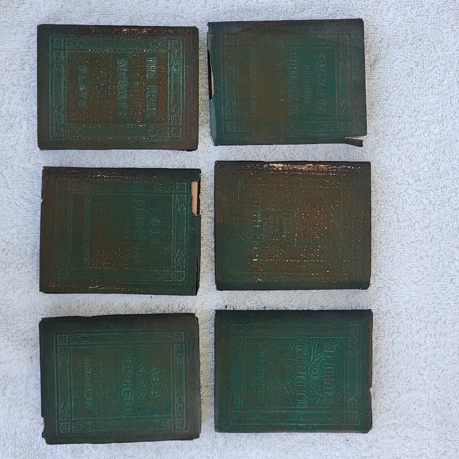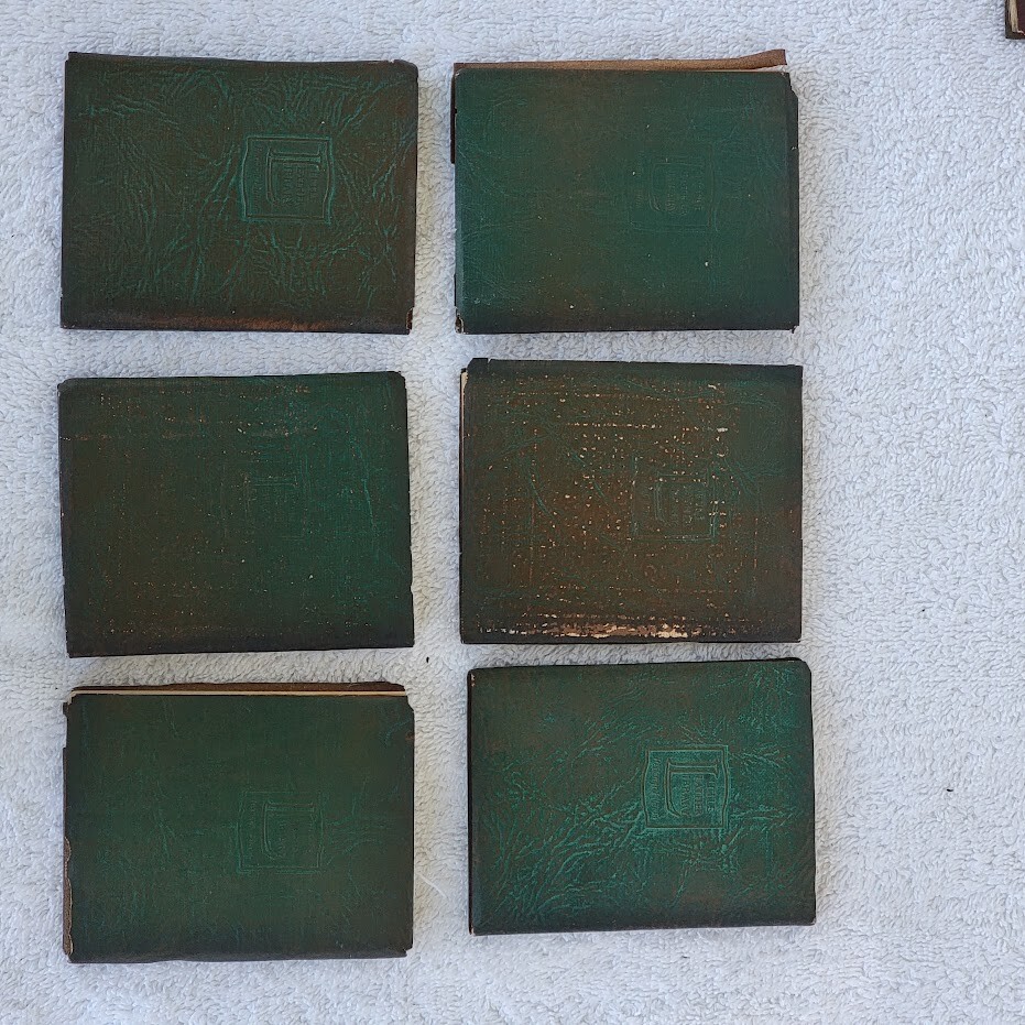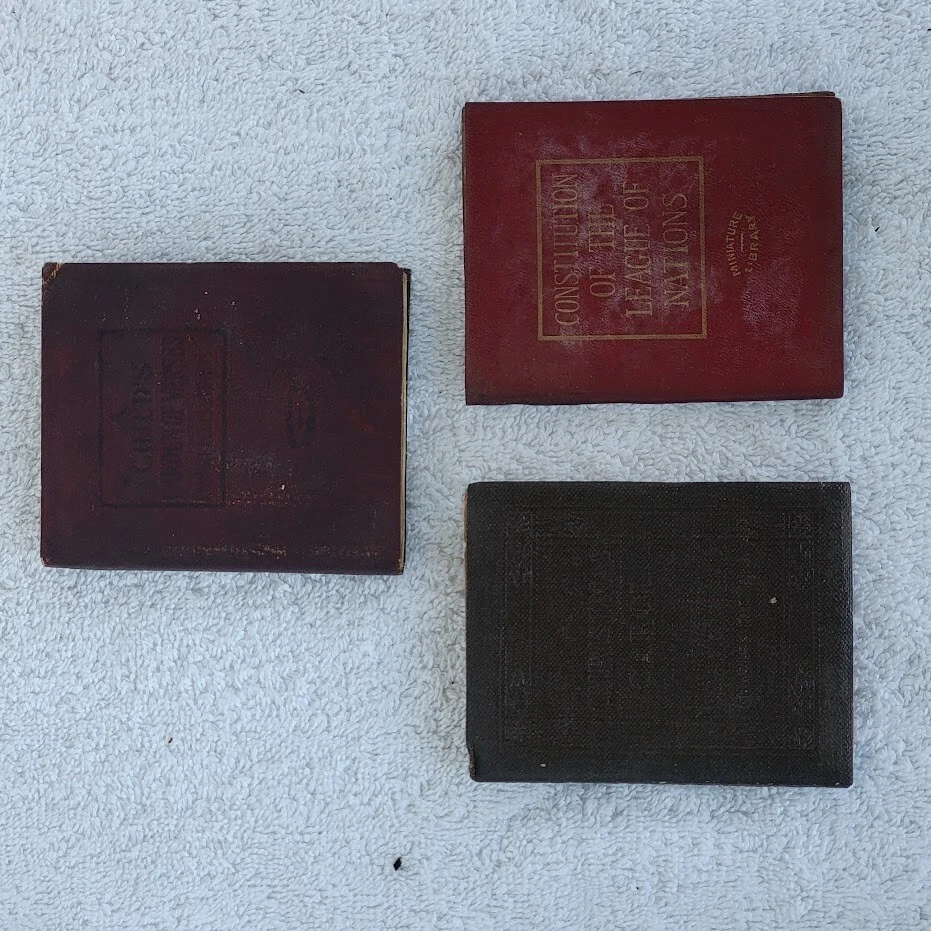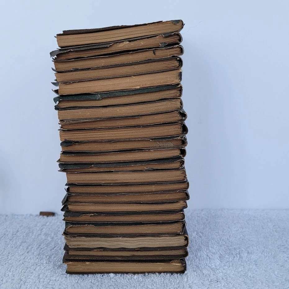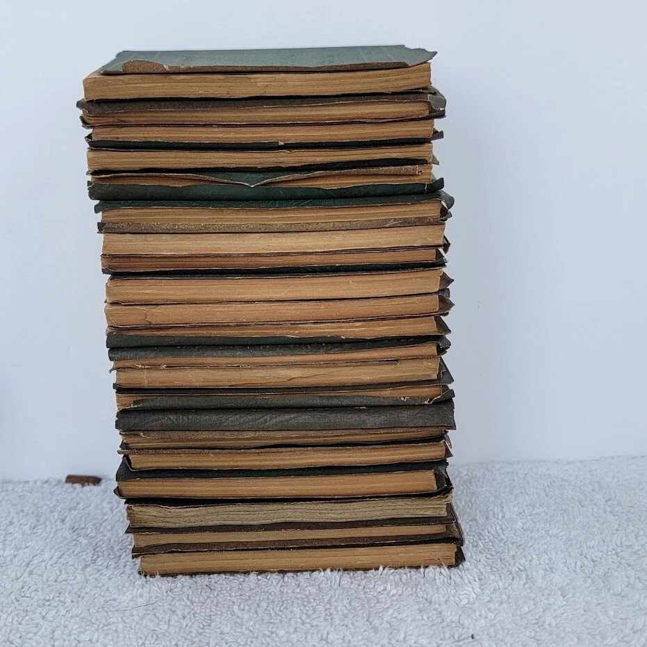 Up for sale is a collection of 21 Leather bound Pocketbooks by the Little Leather Library Book Collection out of New York. Books dated 1921. Titles: Sonnets from the Portugese, Comtesse de St. Geran, The trial of Socrates, Ongoing to Church, Mumu, Snowbound and other poems, A Christmas Carol, Constitution of League of Nations, Child's Garden of Verses, Murders in the Rue Morgue, Pelleas and Melisande, Old Christmas, Uses of Great Men, Irish Melodies, Importance of being Earnest, Memories of President Lincoln, Asa Man Thinketh, A Tillyloss Scandal, Lancelot and Elaine, The Holy Grail and Pippa Passes. Most of wear on these books are on the cover, pages are bright. Please ask all questions and request for additional photos before purchase. You are purchasing the item shown in photos. (Photos are part of the description) Due to lighting colors may be slightly different than photos. Item is sold in as-is condition. Sorry No Refunds or Returns. Only ship to the lower 48 US states. Shipping days are Monday, Wednesday and Friday. Shipped USPS. Thanks for Looking.