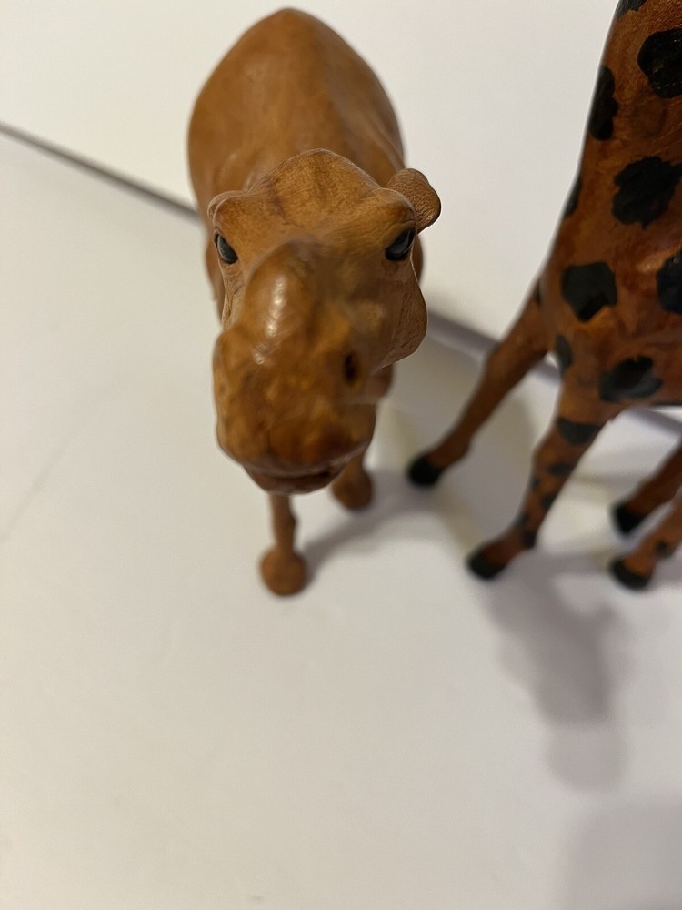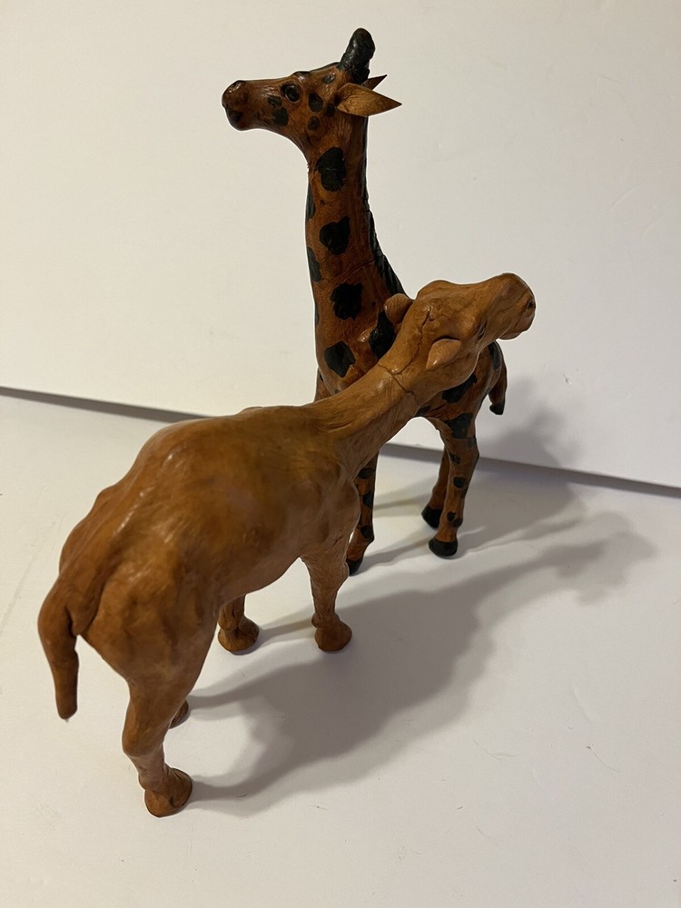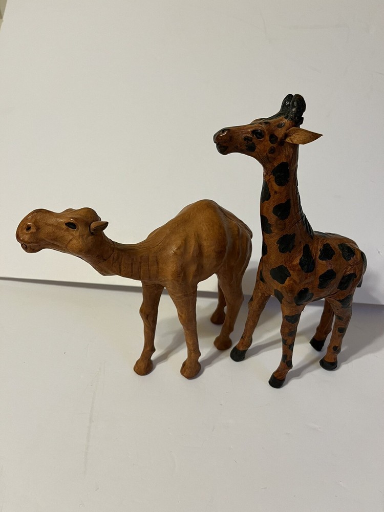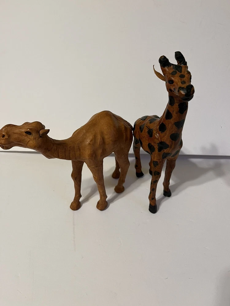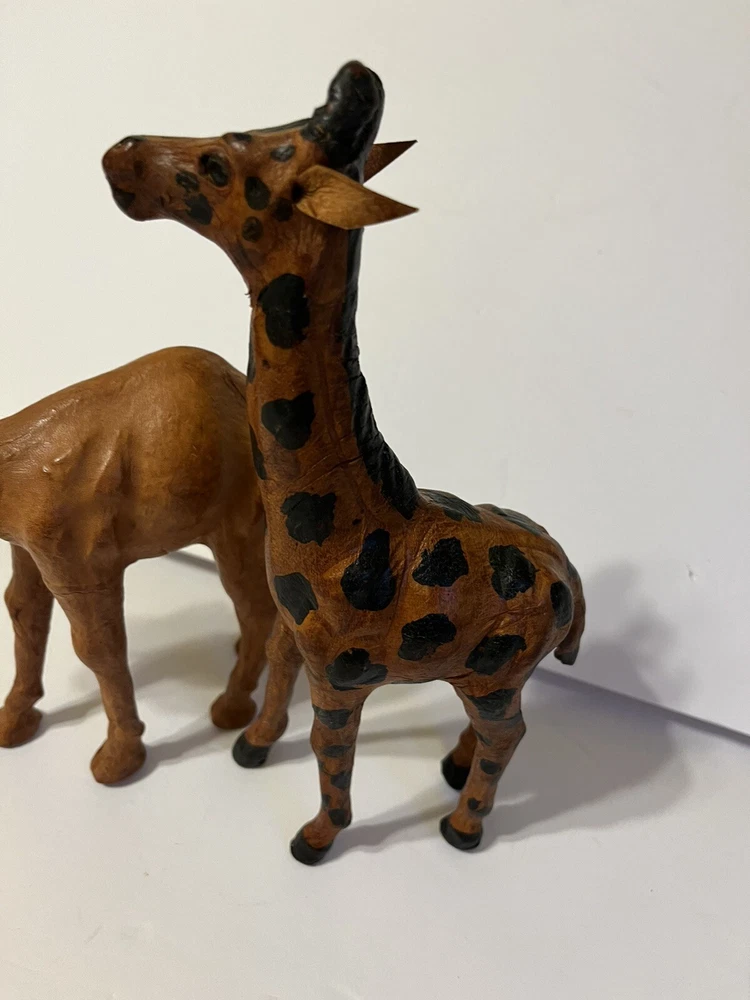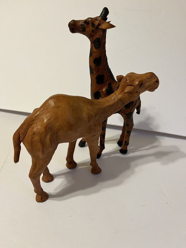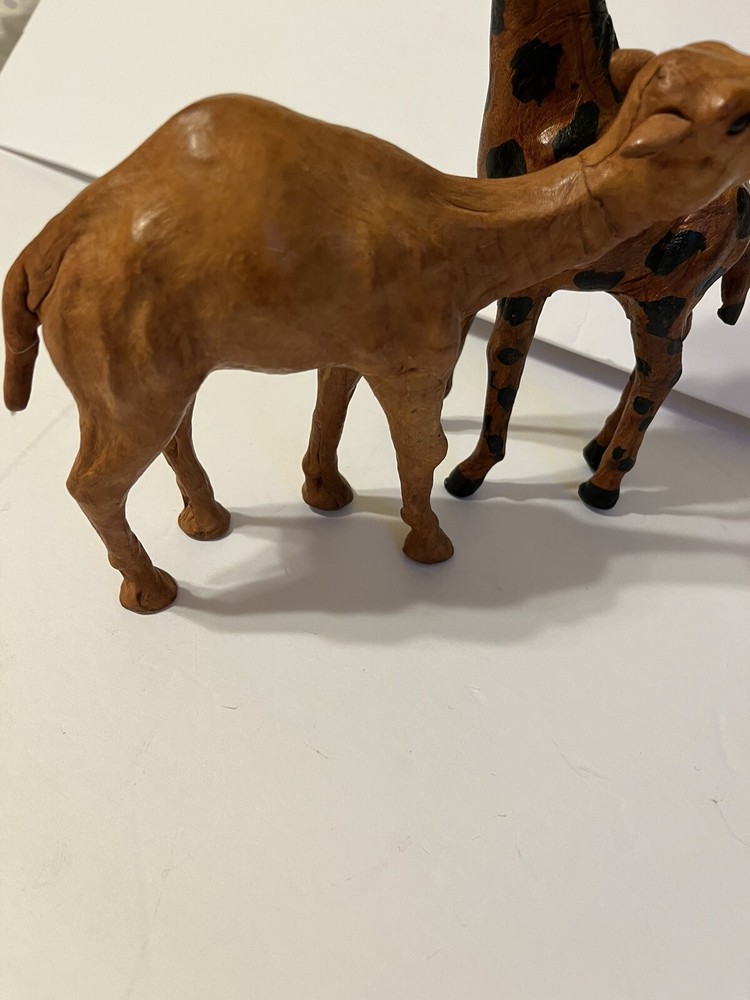 Two Leather Bound Animals Camel And Giraffe. Size -Giraffe 9in - Canel 7in