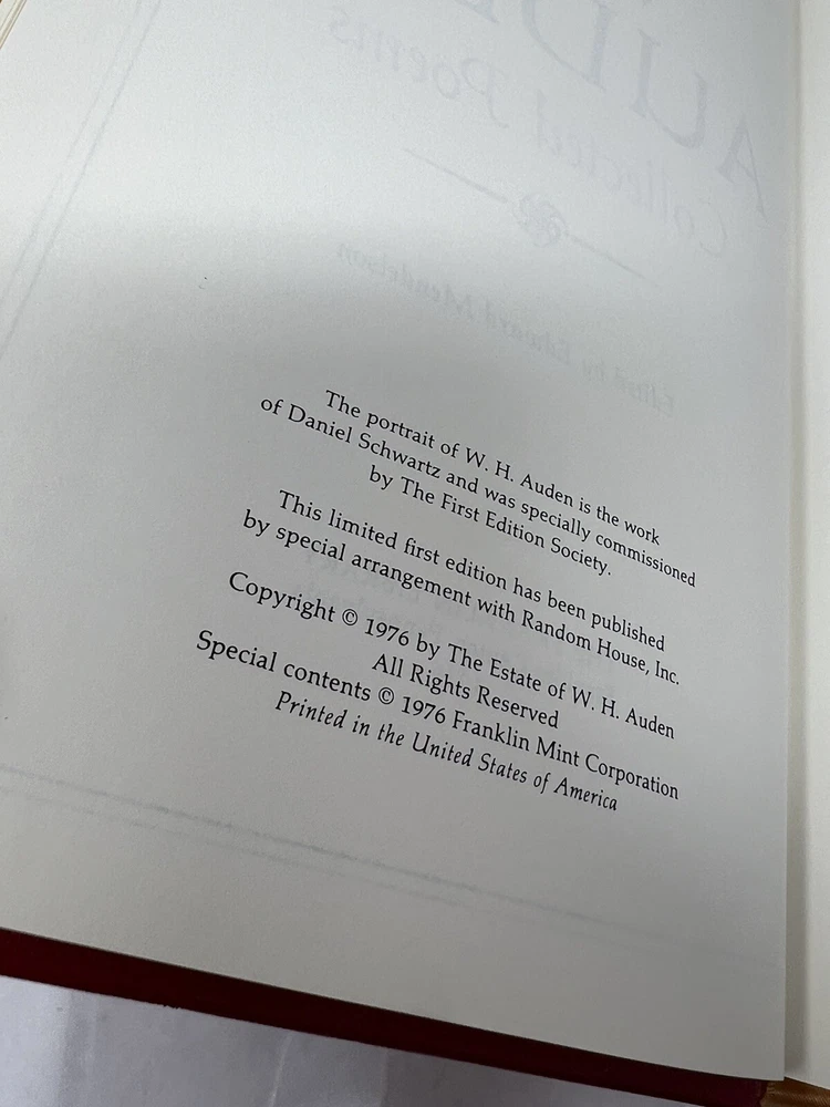 UNREAD Franklin Library W.H. AUDEN COLLECTED POEMS Limited First Ed 1976 Leather book! Wear from storing on shelf. View images, comes a shown. Excellent condition!...