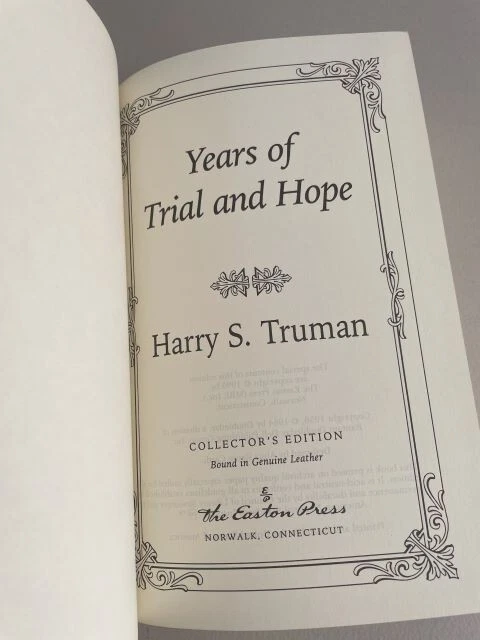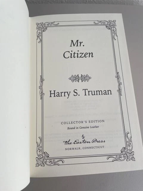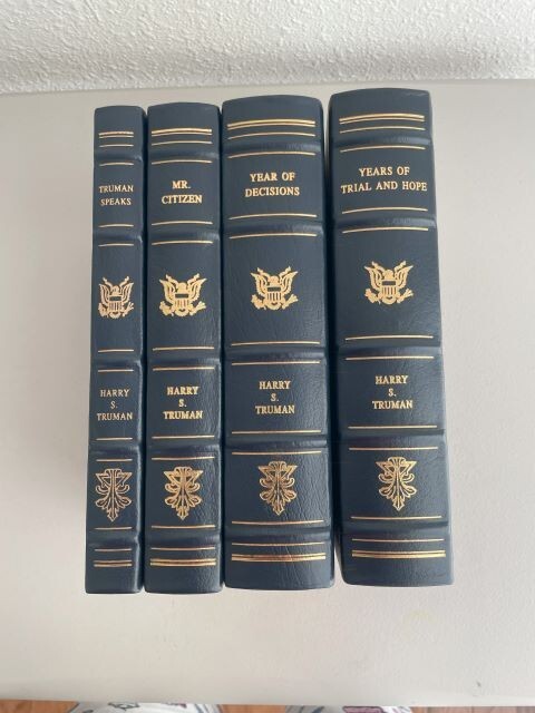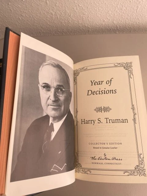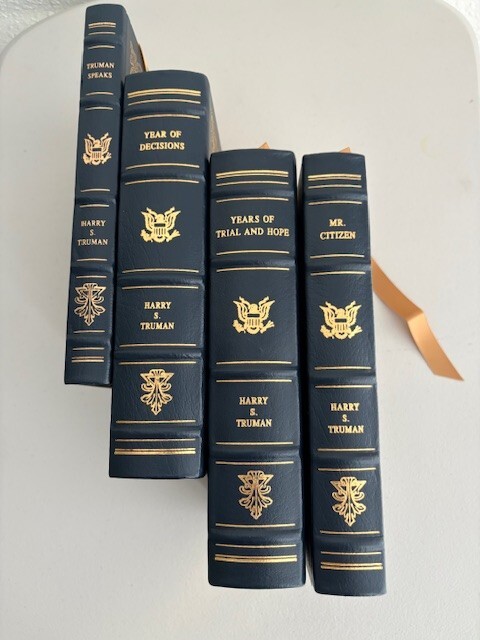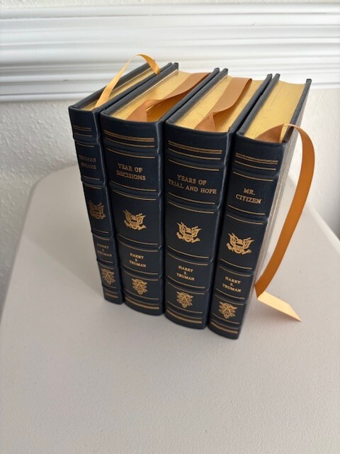 Immerse yourself in the historical legacy of the 33rd President of the United States with this exceptional four-volume collector's edition of Harry S. Truman's autobiography. Crafted for the discerning reader, the leather-bound books promise a luxurious tactile experience, preserving the saga of Truman's rise to the presidency and his significant tenure from 1945 to 1953.Never read, these volumes offer an unspoiled voyage through the political landscape of mid-20th century America. They're a testament to the enduring spirit of service and the pivotal role Bess Truman played as First Lady, all wrapped in a theme that celebrates the political fervor of the era. A must-have for aficionados of historical literature and memorabilia. Volumes inclusive of Truman Speaks, Mr. Citizen, Years of Trail and Hope, & Years of Decisions