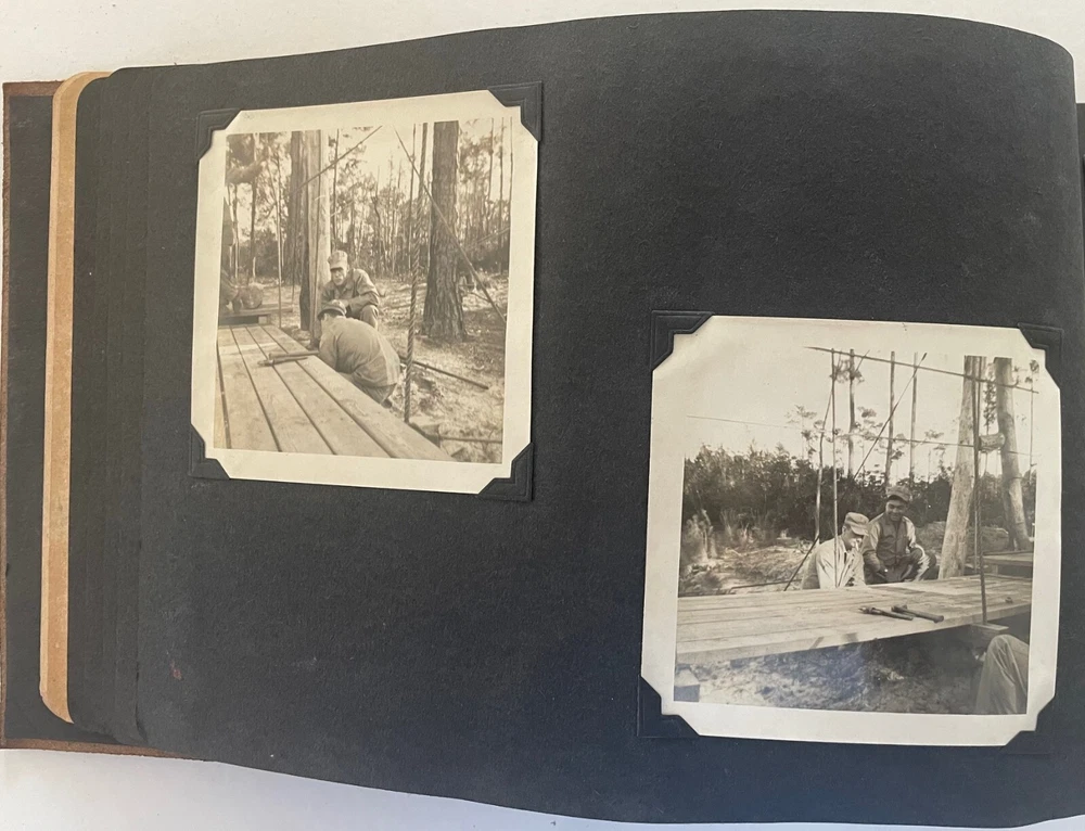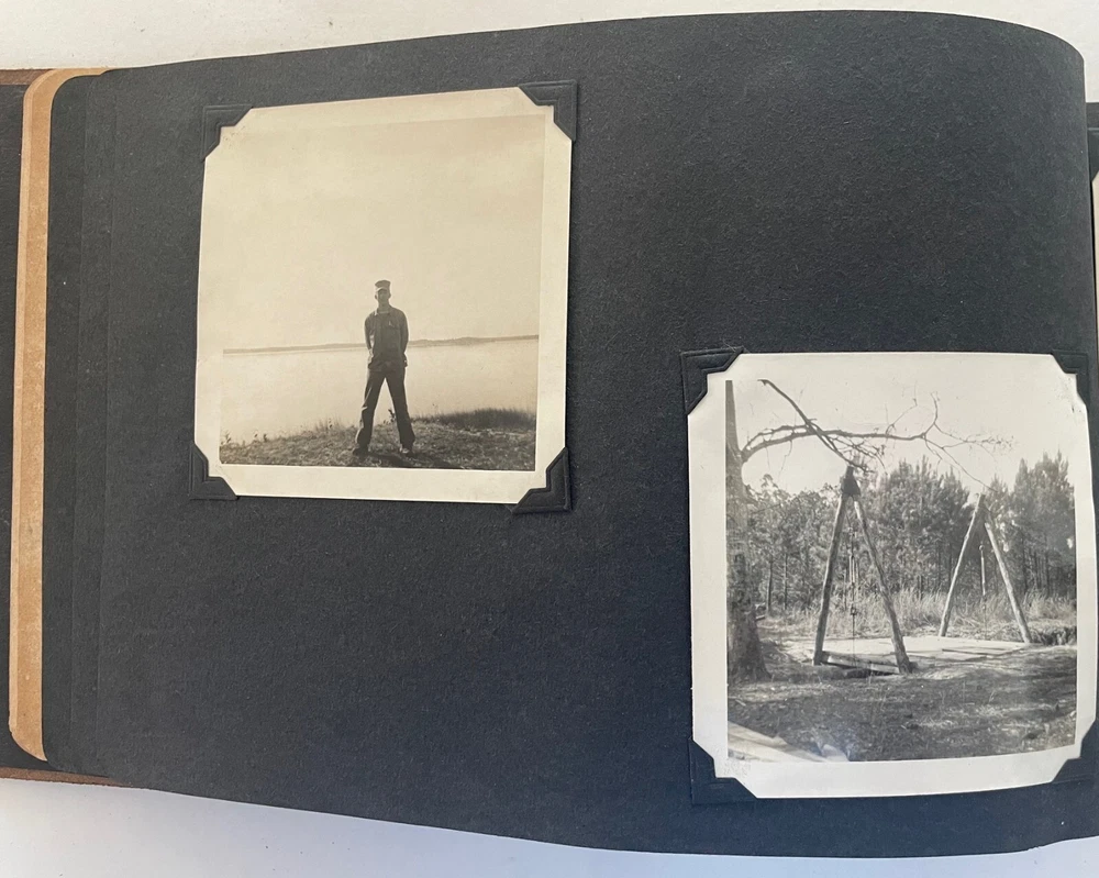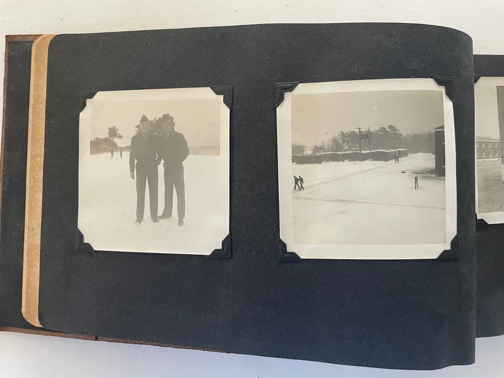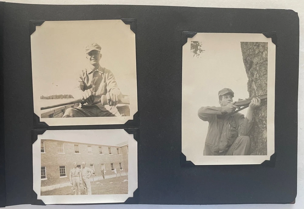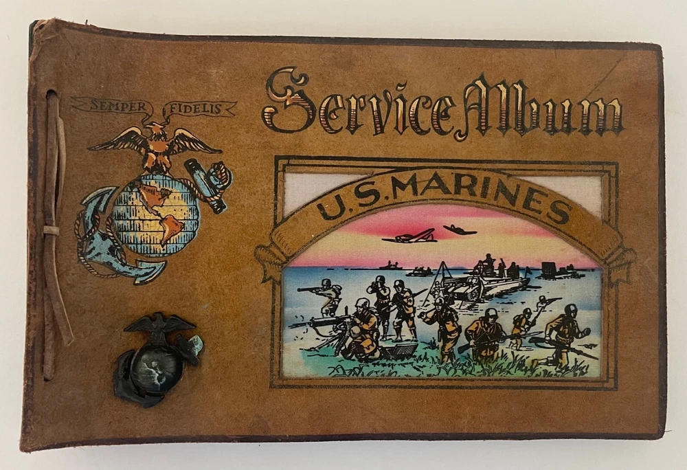 My Father, John Vahey attended United States Marine Corps (USMC) training at Camp LeJeune, NC during the Korean War. He purchased this USMC Leather Bound Service Album at the Camp LeJeune Marine Corps Exchange. When my father died in May 1999, I received all his USMC service items. I retained all his USMC memorabilia for nearly 25 years. Since my wife and I recently relocated from Manassas, VA to Fort Myers, FL we no longer have the space to display or indefinitely store all his USMC items. Subsequently, I have decided to begin posting these items for sale on eBay. The next item for sale on eBay is this USMC Leather Bound Service Album With Black & White Photos from 1951. The front cover of the USMC Leather Bound Service Album is shown in the first attached high-resolution photograph . The album’s cover has some minor wear, but still maintains its vibrant colors. The raised USMC Insignia attached to the lower left-hand side of the cover has some minor patina. The album’ s length is 11 inches wide, and its height is 7 inches high. The album was stored in a large paper folder and stored in a sealed plastic container. The rear cover of the USMC Leather Bound Service Album is shown in the second attached high-resolution photograph . The rear side of the album’s front cover is shown in the third attached high-resolution photograph . The first inside page is shown on the right side of the album is the “DOMAIN OF NEPTUNES REX” as shown in the fourth attached high-resolution photograph . Although the page is separated from the center spines by three punch holes the page is still completely readable and has a round gold seal with sharp edges on the bottom right corner. Note: The left side of the page has some curled edges as exhibited in the photograph. The next page shown vertically is “MY LOG AND DIARY” which was left blank as shown in the fifth attached high-resolution photograph . There are six more pages (front and back) that contain blank MY LOG AND DIARY sheets. Note: The page shows aging and the 3 1/2 inches by 3 1/2 inches square outline of the photographs pasted on the adjacent page as shown in the sixth attached high-resolution photograph . The first black photograph album page is shown in the seventh attached high-resolution photograph . My father is captured in the first picture on the left-hand side. He is seated on the right next to another unknown Marine. My father pasted two pictures on each black page as shown in the eighth through fourteenth attached high-resolution photographs . The next black photograph album page contains three pictures as shown in the fifteenth attached high-resolution photograph. The smaller picture in the bottom left corner measures 3 1/2 inches long and 2 1/2 inches high. The next black photograph album page contains two pictures as shown in the sixteenth attached high-resolution photograph . The next black photograph album page contains three pictures as shown in the seventeenth attached high-resolution photograph. The last two pictures are shown on the album’s right side in the eighteenth attached high-resolution photograph. The photograph on the right contains my father (right) and my uncle (left). My father wrote in blue ink the following text “Bob” and “Me” under their respective picture. The remaining 25 (back-to-back) black album pages are blank as exhibited in the nineteenth attached high-resolution photograph . There are a total of 26 black and white photographs: 21 photographs (3 ½ inches wide by 3 ½ inches high) ; 2 photographs (3 ½ inches wide by 2 ½ inches high); 1 photograph (3 ¼ inches wide by 4 ¼ inches high); 1 photograph (3 ¼ inches wide by 3 ¼ inches high) and 1 photograph (2 ½ inches wide by 3 inches high). As exhibited in the previous photographs, this album is in very good condition for being over 70 years old. This album would be a great addition for any Marine, military enthusiast, novice or professional military collector. Note: Photographs are an important part of my description; please review all photographs before purchasing. If my photographs and or description are lacking something of importance, please ask questions prior to purchasing. Thanks!
