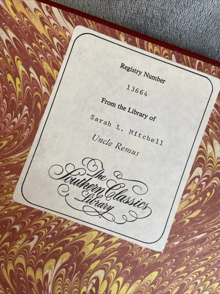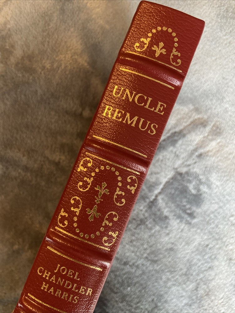 This is a rare and collectible edition of "Uncle Remus" by Joel Chandler Harris, published by Easton Press in 1983. The leather bound book is a limited edition collector's item. The book is perfect for collectors and enthusiasts who appreciate rare and unique items. This beautiful pre-owned book is in very good condition. The spine and all pages are firmly intact. Crisp pages. There is little to no wear on the cover. Pages are clean with no writing. There is a Southern Classics Library sticker in the front with a typed name and registry number. Some spotting on the leaves of the book. Please see photos for details.