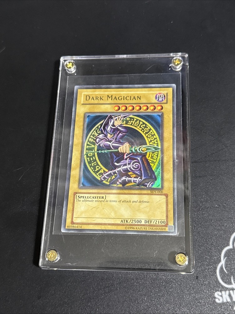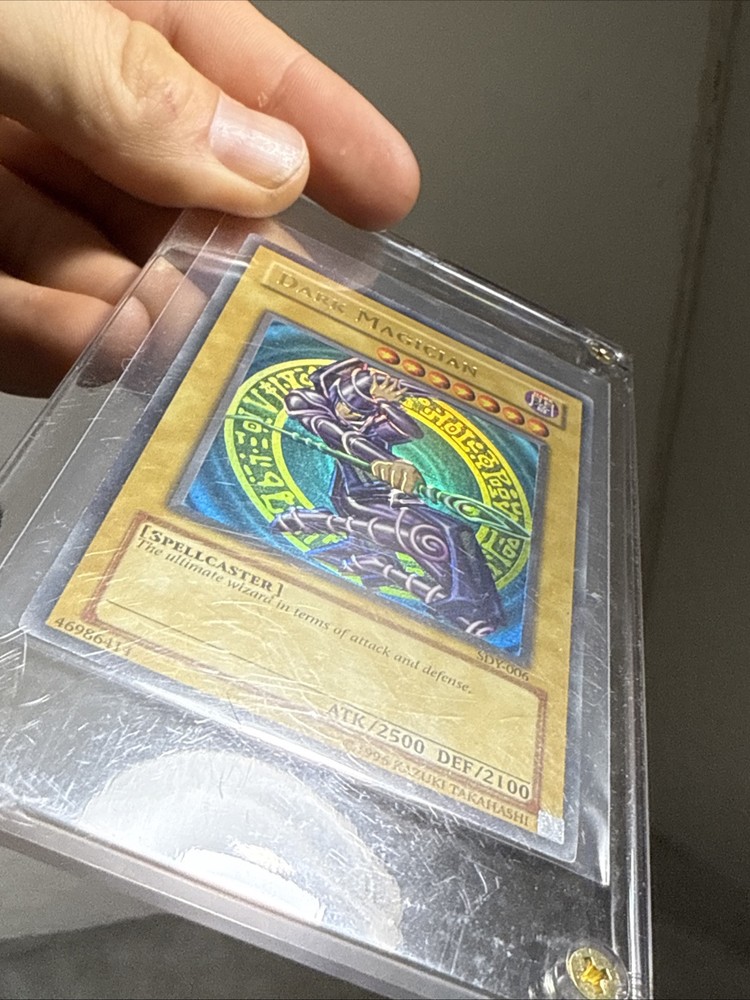 The product is an Unlimited edition Dark Magician card from the Yu-Gi-Oh! TCG. It features a Holo finish and is made of card stock. The card depicts the character Yugi Muto and falls under the Spellcaster creature/monster type. This Ultra Rare card is manufactured by Konami in the United States and is not autographed. FADED YELLOW IDC IF YOU CANT TELL OR WHATEVER IM NOT LOOKING FOR ARGUMENTS IN THE DM. Card is priced as is.
