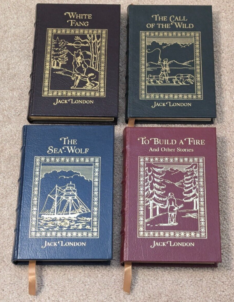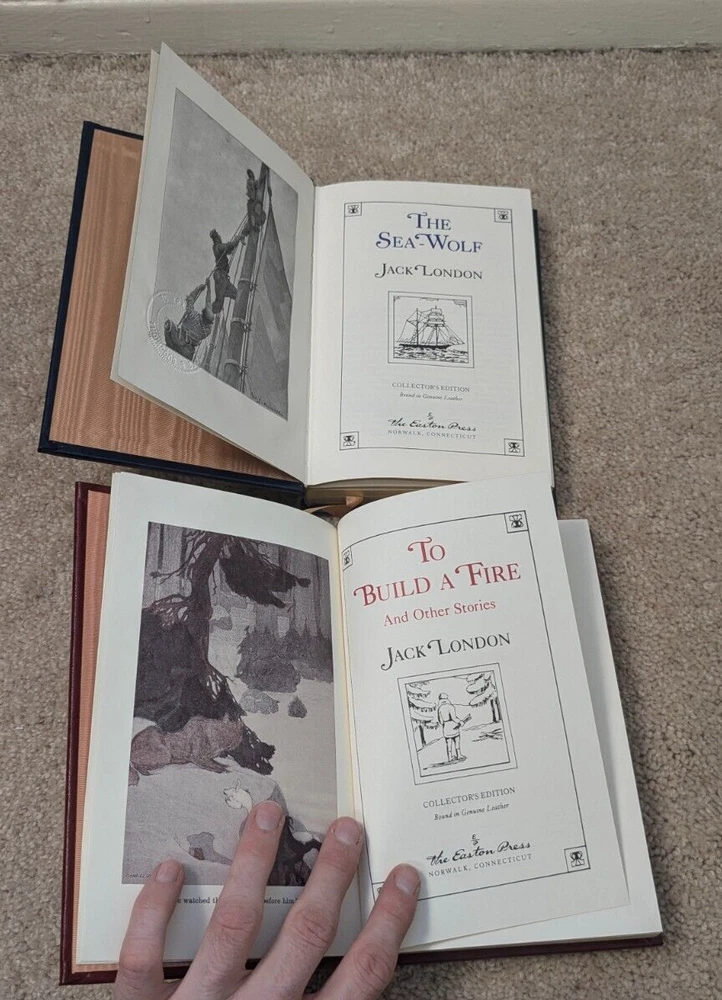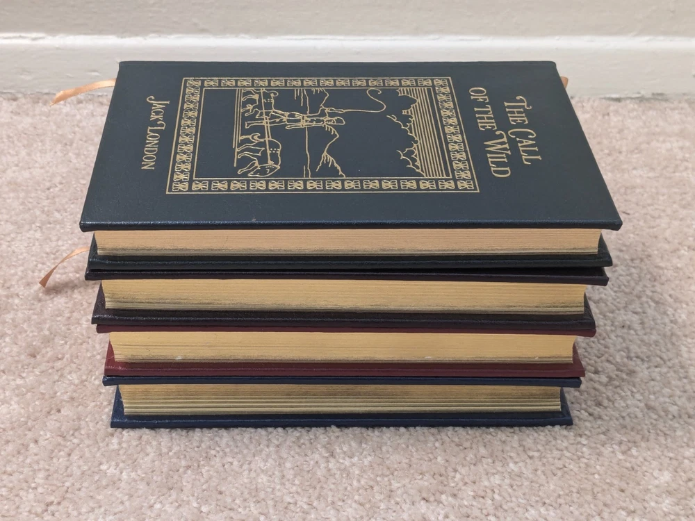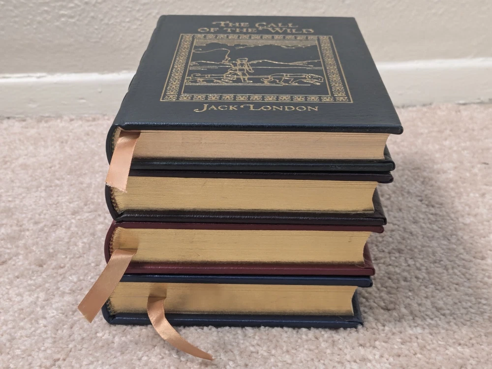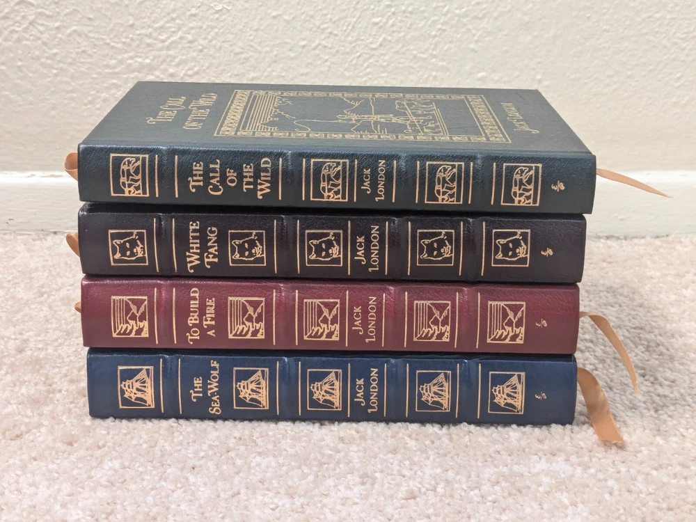 This Easton Press Jack London set is a beautiful collector's edition! The leather-bound volumes have a classic, elegant look with only minor wear—just a few small imperfections in the leather and gold trim. The previous owner’s stamp adds character without being intrusive. White Fang, Call of the Wild, and more in one stunning set—perfect for any literature lover. Free returns make it a risk-free purchase!