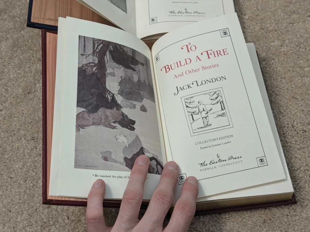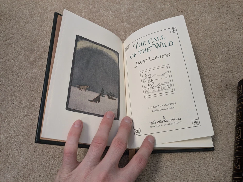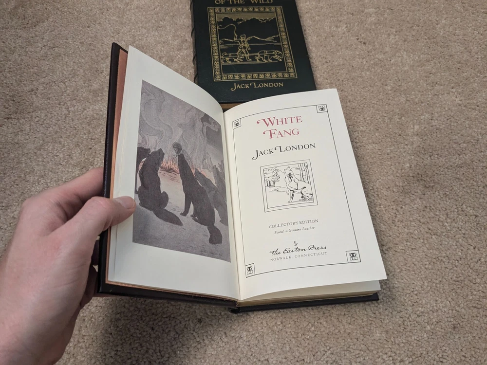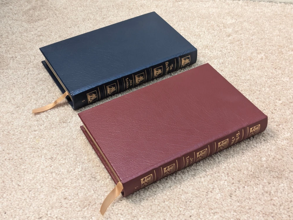 This Easton Press Jack London set is a beautiful collector's edition! The leather-bound volumes have a classic, elegant look with only minor wear—just a few small imperfections in the leather and gold trim. The previous owner’s stamp adds character without being intrusive. White Fang, Call of the Wild, and more in one stunning set—perfect for any literature lover. Free returns make it a risk-free purchase!