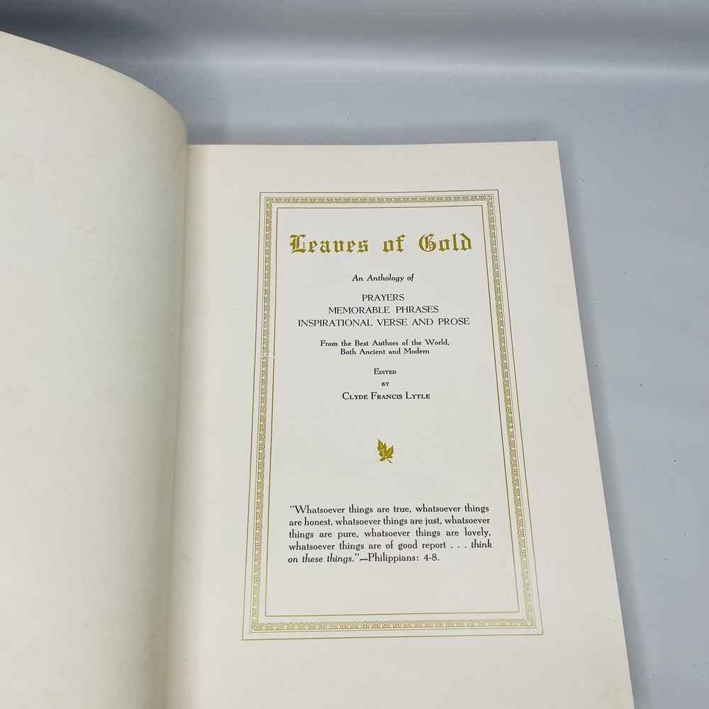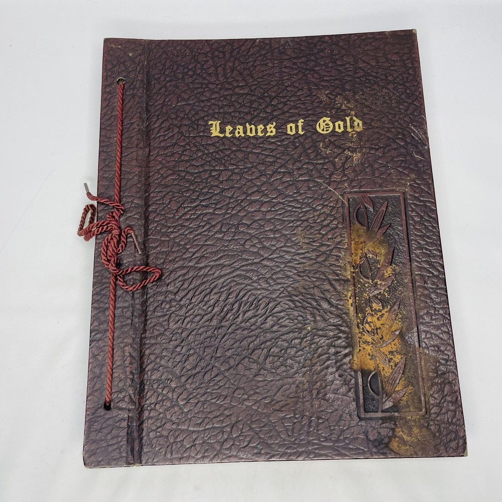 VINTAGE LEAVES OF GOLD 1948 LEATHER BOUND BOOK CHRISTIAN PRAYERS PHRASES GOD Pre-owned condition - see photos