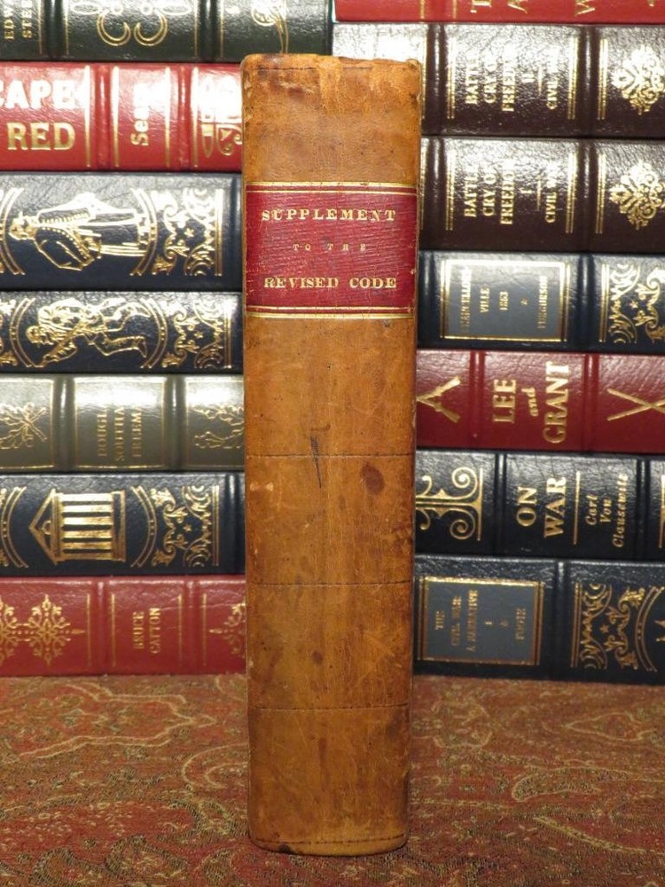 SUPPLEMENT TO THE REVISED CODE OF THE LAWS OF VIRGINIA: BEING A COLLECTION OF ALL THE ACTS OF THE GENERAL ASSEMBLY OF A PUBLIC AND PERMANENT NATURE, PASSED SINCE THE YEAR 1819, WITH GENERAL INDEX TO WHICH ARE PREFIXED, THE ACTS ORGANIZING A CONVENTION, THE DECLARATION OF RIGHTS, AND THE AMENDED CONSTITUTION OF VIRGINIA FIRST EDITION NEAR FINE CONDITION PROTECTED IN A CLEAR, MYLAR DUST JACKET Original, Clean, Solidly Bound, Antique Book Full, Genuine Leather Covers with Gold Lettering on Red, Spine Background PUBLISHED BY SAMUEL SHEPHERD & COMPANY, RICHMOND, VIRGINIA, IN 1833 This original, first edition Supplement to the Revised Code of the Laws of Virginia, presents an introduction and collection the public and general Acts which have been passed since the revisal of 1819 and embraces all those acts with some few exceptions. The new Acts include a detailed Code restricting the rights of slaves and Free Negroes, passed after the Nat Turner insurrection. The laws prohibit their rebellious instruction, except upon permission of their ministers, and then only by white preachers. A historically significant collection of Virginia State Laws. THIS BOOK IS IN NEAR FINE CONDITION This original, first edition, antique book is in excellent overall condition. It comes protected in a clear, Mylar dust jacket (see photo #3). The book is bound in full, genuine leather, brown covers with gold lettering and lined highlights on a red, spine background. The book has solid binding and has no looseness throughout. The spine lettering is bright. The interior is clean and the pages are in excellent condition with uniform toning as is usual for its age. The book has no writing, smudging, pasteboards, stamps or other markings. The end pages and some other pages have some foxing. It is not an ex-library book. Some pages have waterstaining to the edges, not affecting the wording. The leather has light rubbing, but is in nice overall condition. vii and 584 pages. Overall a nice, original, first edition book on Virginia laws protected in a clear, Mylar dust jacket. SUPPLEMENT TO THE REVISED CODE OF THE LAWS OF VIRGINIA: BEING A COLLECTION OF ALL THE ACTS OF THE GENERAL ASSEMBLY OF A PUBLIC AND PERMANENT NATURE, PASSED SINCE THE YEAR 1819, WITH GENERAL INDEX TO WHICH ARE PREFIXED, THE ACTS ORGANIZING A CONVENTION, THE DECLARATION OF RIGHTS, AND THE AMENDED CONSTITUTION OF VIRGINIA FIRST EDITION NEAR FINE CONDITION PROTECTED IN A CLEAR, MYLAR DUST JACKET Original, Clean, Solidly Bound, Antique Book Full, Genuine Leather Covers with Gold Lettering on Red, Spine Background PUBLISHED BY SAMUEL SHEPHERD & COMPANY, RICHMOND, VIRGINIA, IN 1833 This original, first edition Supplement to the Revised Code of the Laws of Virginia , presents an introduction and collection the public and general Acts which have been passed since the revisal of 1819 and embraces all those acts with some few exceptions. The new Acts include a detailed Code restricting the rights of slaves and Free Negroes, passed after the Nat Turner insurrection. The laws prohibit their rebellious instruction, except upon permission of their ministers, and then only by white preachers. A historically significant collection of Virginia State Laws. THIS BOOK IS IN NEAR FINE CONDITION This original, first edition, antique book is in excellent overall condition. It comes protected in a clear, Mylar dust jacket (see photo #3). The book is bound in full, genuine leather, brown covers with gold lettering and lined highlights on a red, spine background. The book has solid binding and has no looseness throughout. The spine lettering is bright. The interior is clean and the pages are in excellent condition with uniform toning as is usual for its age. The book has no writing, smudging, pasteboards, stamps or other markings. The end pages and some other pages have some foxing. It is not an ex-library book. Some pages have waterstaining to the edges, not affecting the wording. The leather has light rubbing, but is in nice overall condition. vii and 584 pages. Overall a nice, original, first edition book on Virginia laws protected in a clear, Mylar dust jacket. Check out my other items ! Be sure to add me to your favorites list ! Sign up for my email newsletters by adding my eBay Store to your Favorites ENJOY THE BOOKSHOP Pictures sell! Auctiva offers Free Image Hosting and Editing. The complete eBay Selling Solution. Track Page Views With Auctiva's Counter