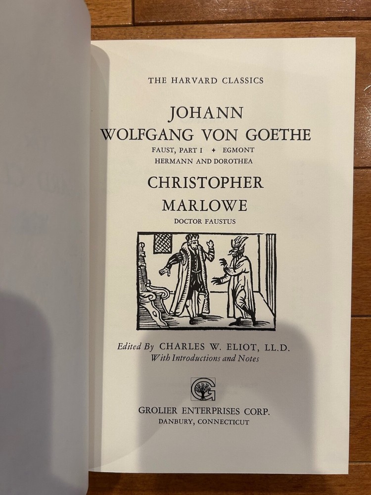 RARE leatherette-bound edition of Goethe and Shakespeare as part of The Harvard Classics Collection: • Johann Wolfgang Von Goethe: Faust Part 1, Egmont, Hermann and Dorothea • Christopher Marlowe: Doctor Faustus Cover: Red leatherette Edges: Gilded Bookmark: Bound red satin ribbon Copyright: 1980 The Harvard Classics is published by Grolier Enterprises with text printed on 55-pound Lockhaven paper specifically prepared for this edition by the Hammermill Paper Company. Printed and bound by R. R. Donnelley and Sons. Endleaf design is reproduced from an original marbled pattern created for this edition by Faith Harrison. Cover stampings and design by Daniel B. Bianchi and Selma Ordewer. NOTE: I have 100+ brand new books for sale. Please check my eBay listings for all available titles. If there are several books that you would like to purchase, just message me with the titles, and I will put together a new post for you with the books you want, and will combine shipping to save you money.