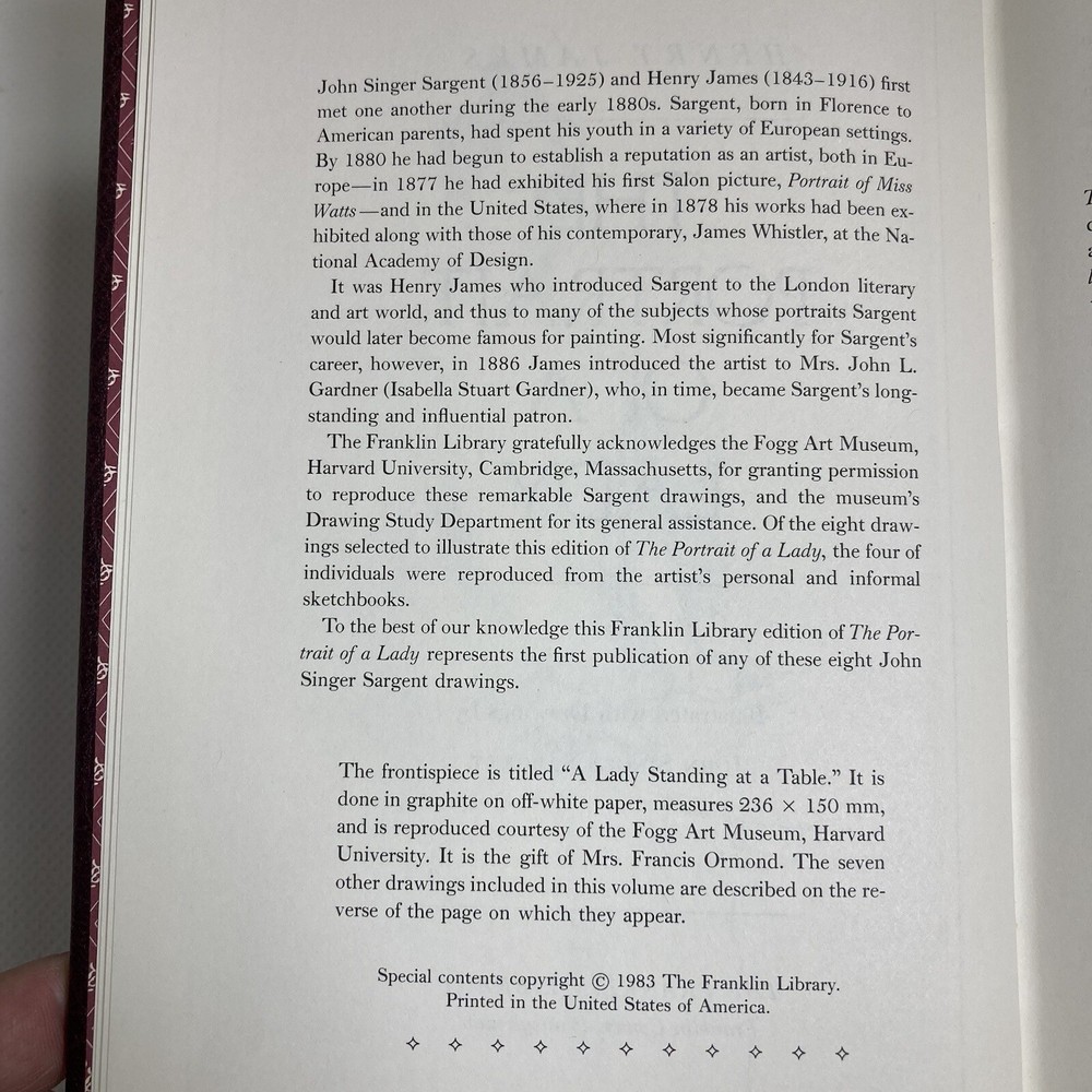VTG Franklin Library The Portrait Of A Lady Leather Gold Edges Illustrated 1983. Please review the pictures for additional details and the condition of this item. Feel free to contact me if you have any questions or would like additional information about the item. I look forward to hearing from you and earning your business. I will carefully package and ship your item via United States Postal Service once payment is received, usually within one to two business days. Your satisfaction is important to me so if you are not happy with your purchase please let me know and I will do what I can to make it right. If for some reason you would like to return your item please make sure it is in the exact same condition as it was when you received it. Thank you for visiting my eBay store and be sure to check out my other items.