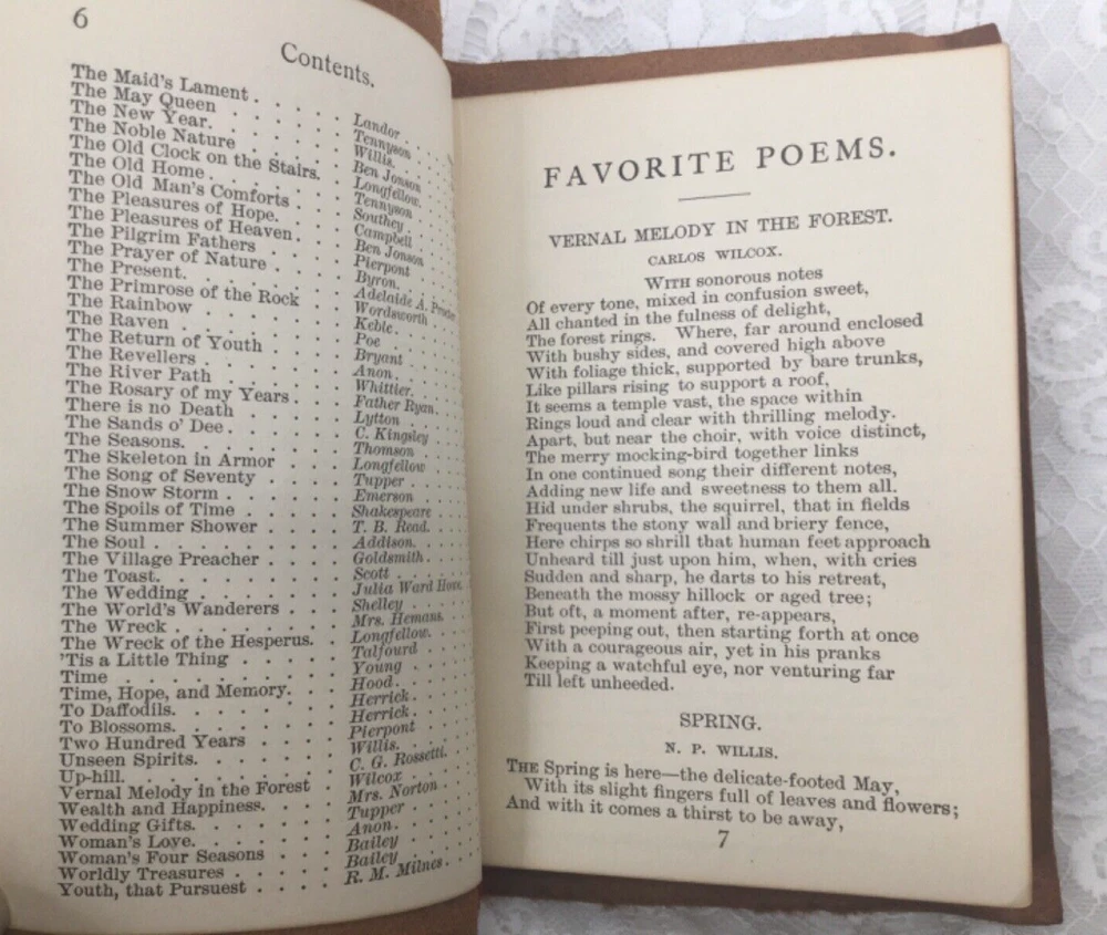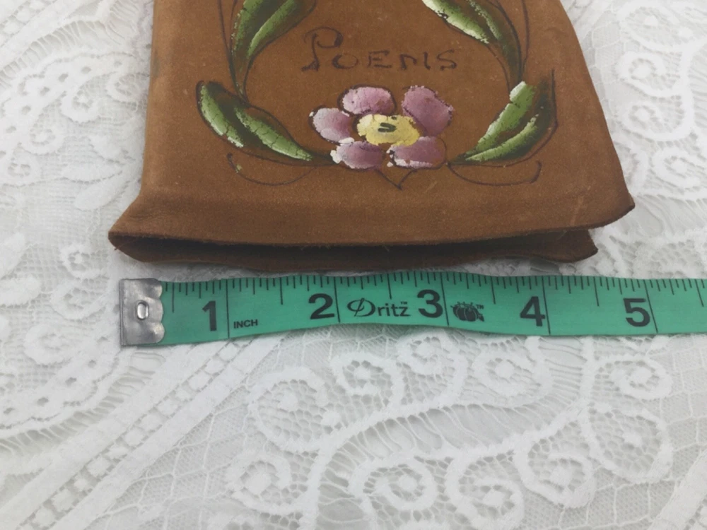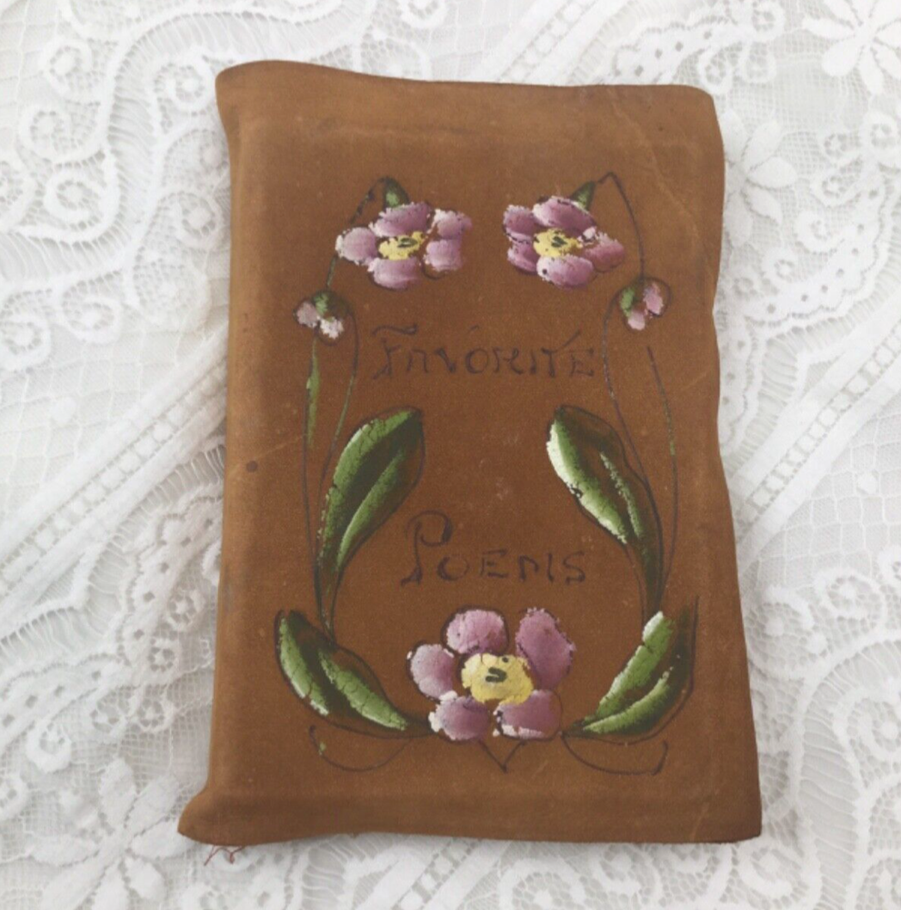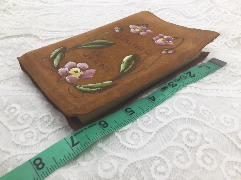 VTG Hurst & Co. Leather Bound Favorite Poems Book American and English Authors Nicely preserved hand painted suede leather bound book of poems (256 pages) shows very minimal wear and tear and light use. Leather is soft and supple. Red ribbon page saver is still intact. Please see photos for additional details.