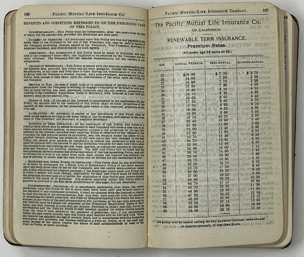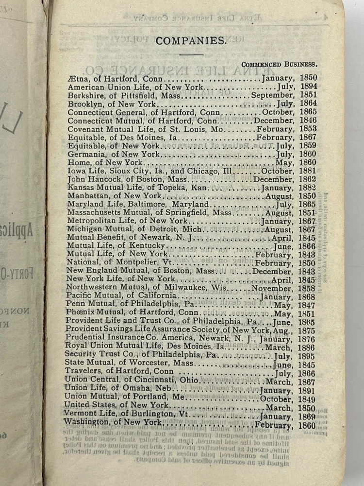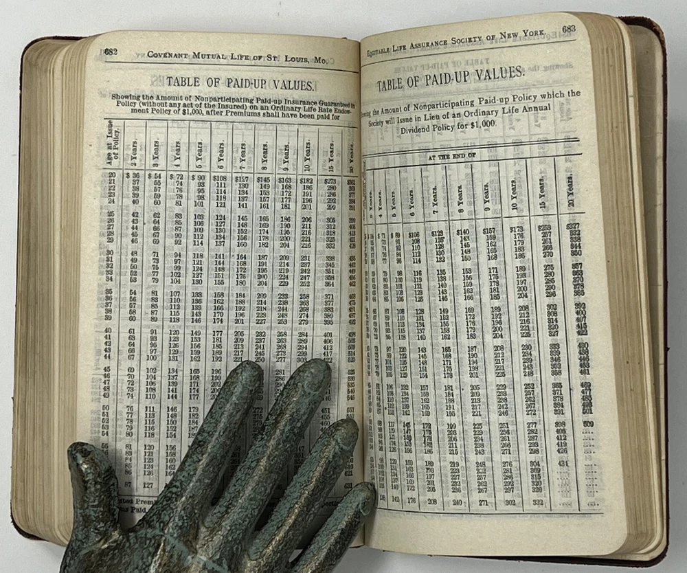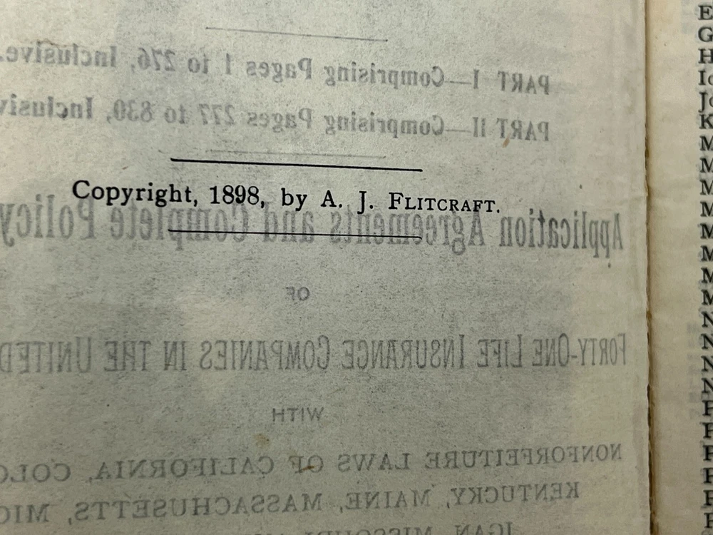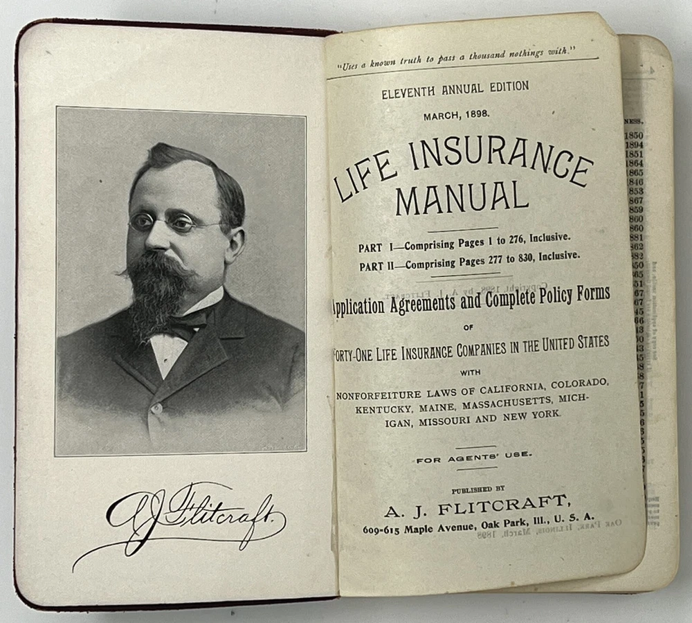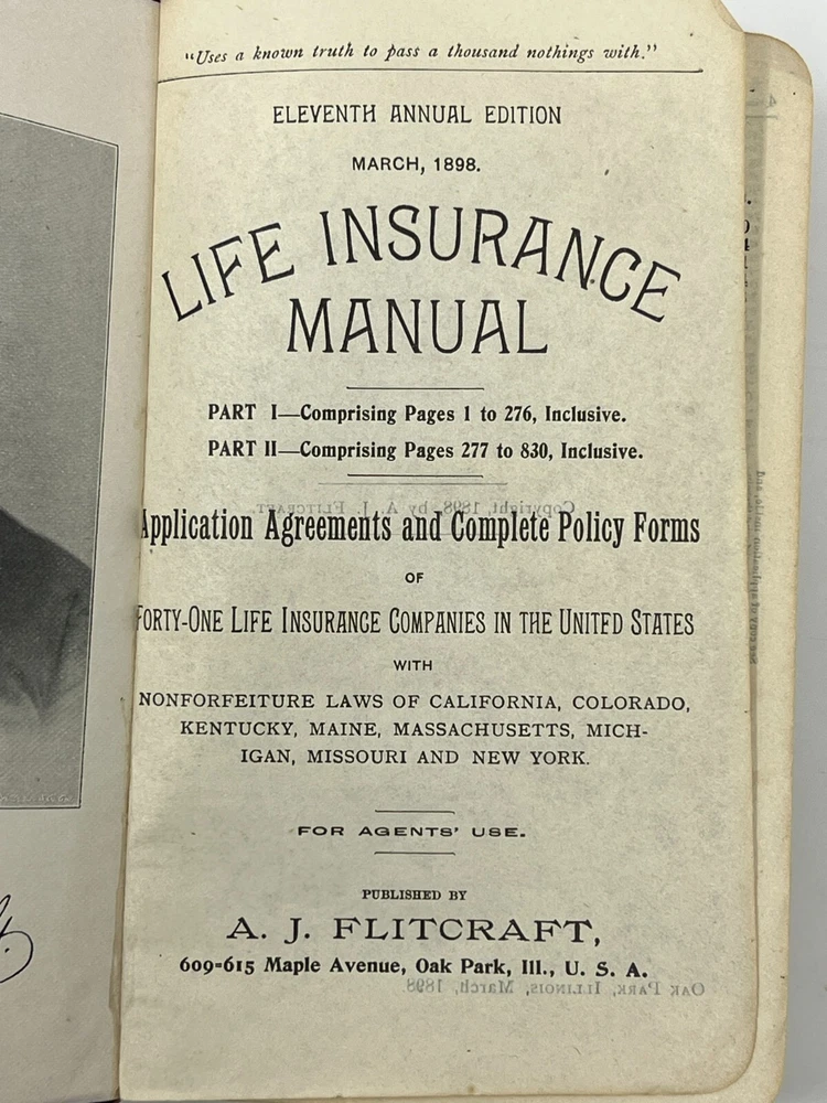 VINTAGE Eleventh Annual Edition Life Insurance Manual - 1898 Leather-Bound Softcover Published by A. J. Flitcraft Application Agreements and Complete Policy Forms of Forty-One Life Insurance Companies in the United States with Nonforfeiture Laws of California, Colorado, Kentucky, Maine, Massachusetts, Michigan, Missouri and New York For Agents' Use Please see pictures to determine the exact condition of this book. Please send a message if you have any questions. We ship promptly.