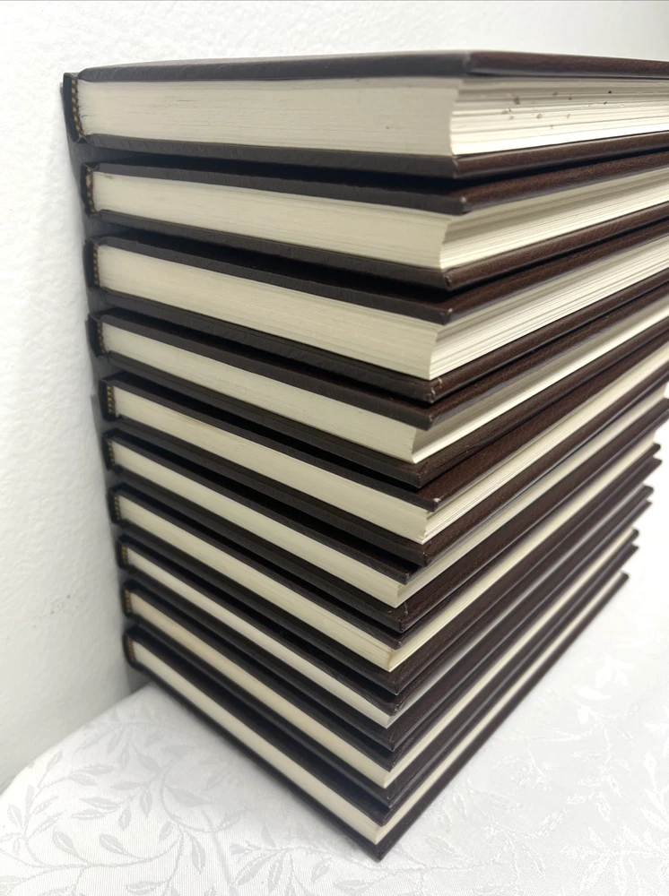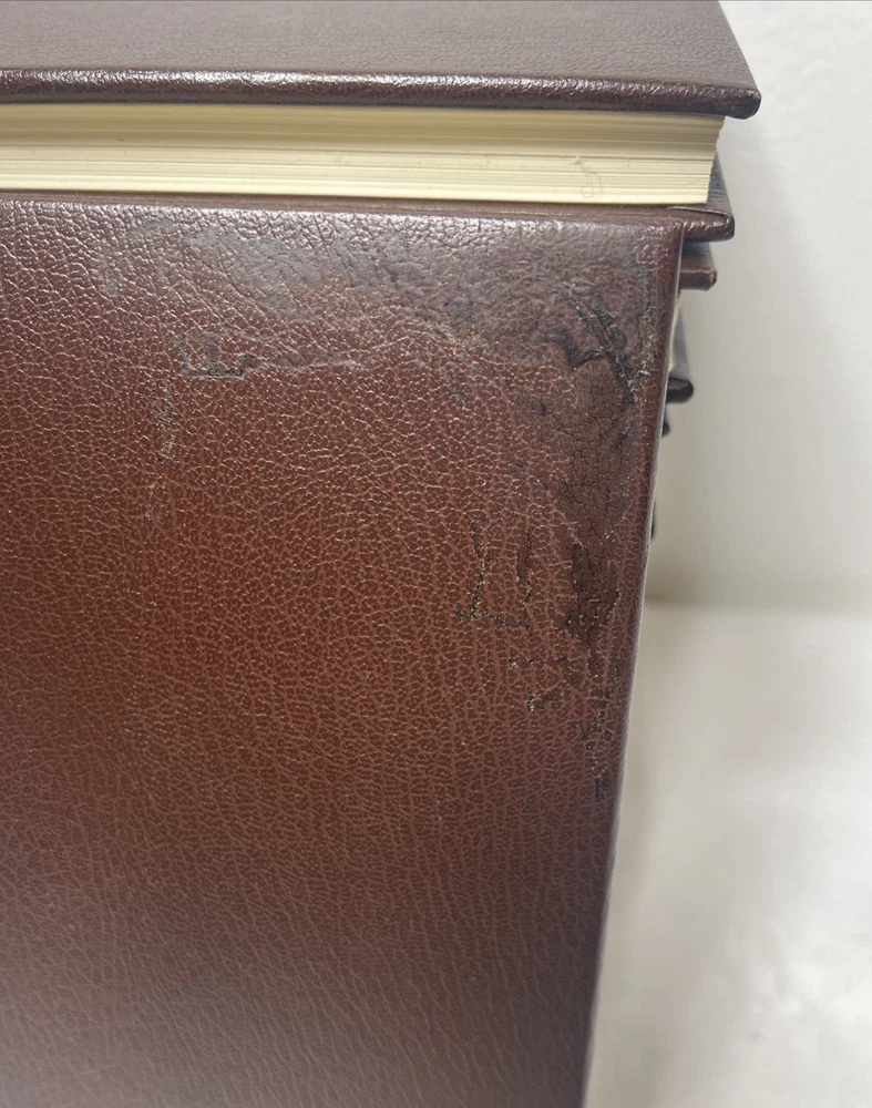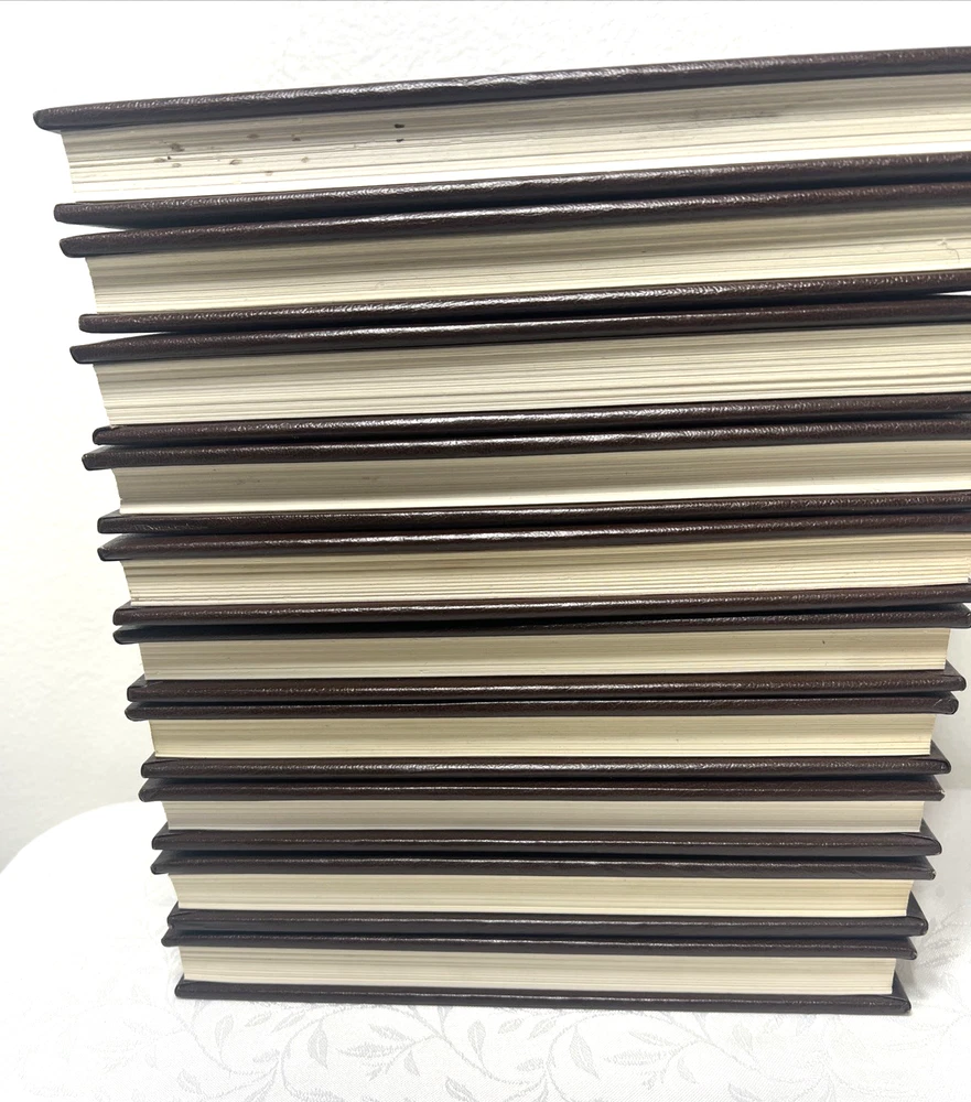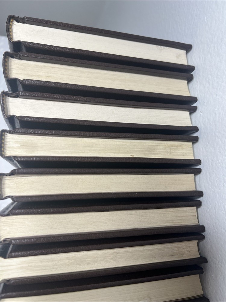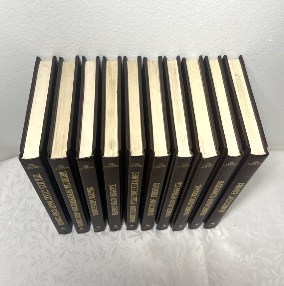 VTG Louis L'Amour Leatherette Hardcover Books Set of 10 Under the Sweetwater Rim Conagher The Man Called Noon Chancy - Has Damage on the front cover Brionne Matagorda - Has a spot on lower left front cover Kilrone Down the Long Hills Tucker Kid Rodeo Some spots on top - Please see pictures Colors may vary slightly depending on light and resolution . We ship out in 1 or 2 business days Thank you for viewing our listing. Please message with any questions you might have and check out our other listings. We offer returns within 30 days of purchase. Thanks and have a great day!