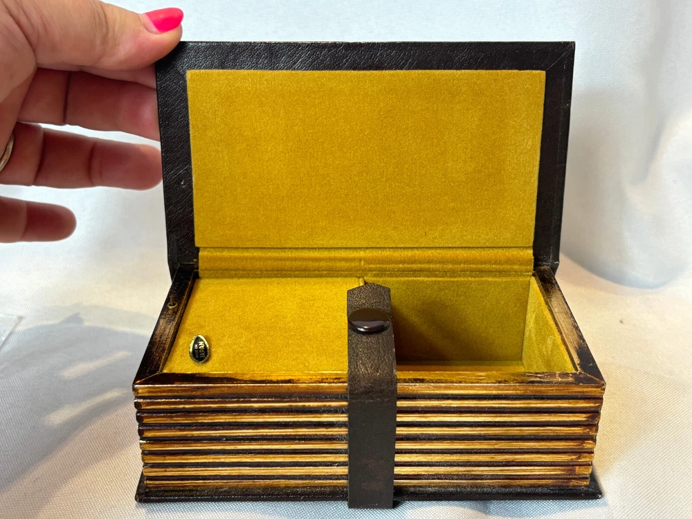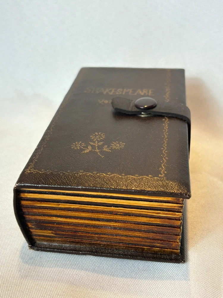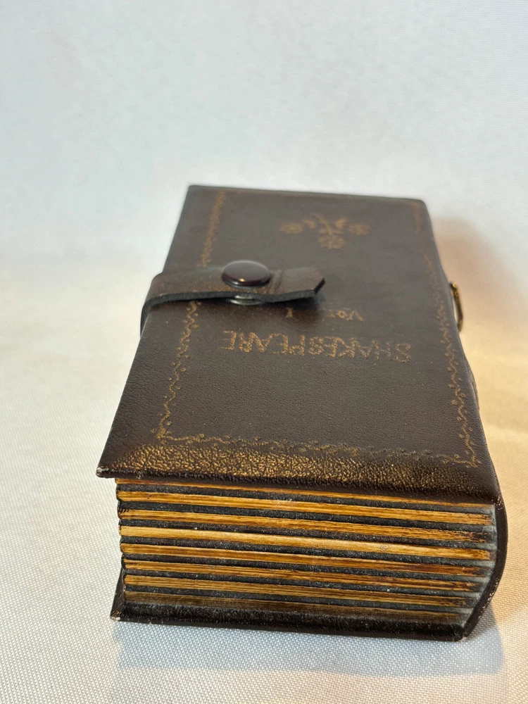 Please stop by our eBay store Sell it Baltimore to check out our other 12,000 items for sale. Our inventory changes daily so please check back often. We are not accepting offers. Prices are as listed. You are buying : VTG Shakespeare Vol 1 Leather Bound Book Music Box Wind Up Made In Japan Approx: 5 5/8" Long x 3 1/2" Wide x 1 3/4" Thick The strap by the snap has creasing and wear, the binding also has some wear all consisntet with age.SOLD AS IS This Is A Working Item . All Marks And Wear Is Consistent With Age. PLEASE SEE ALL PHOTOS FOR CONDITION.