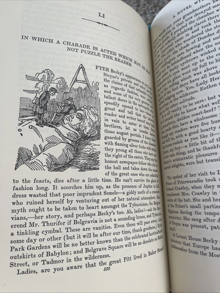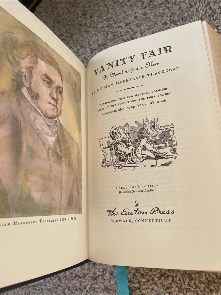 Add a leather bound classic to your shelf! This is a collector's edition of "Vanity Fair" by William Makepeace Thackeray, published by Easton Press. The book is bound in leather and beautifully illustrated. It is written in English and falls under the category of classics in literature and fiction. This edition is an original copy and is highly sought after by collectors.