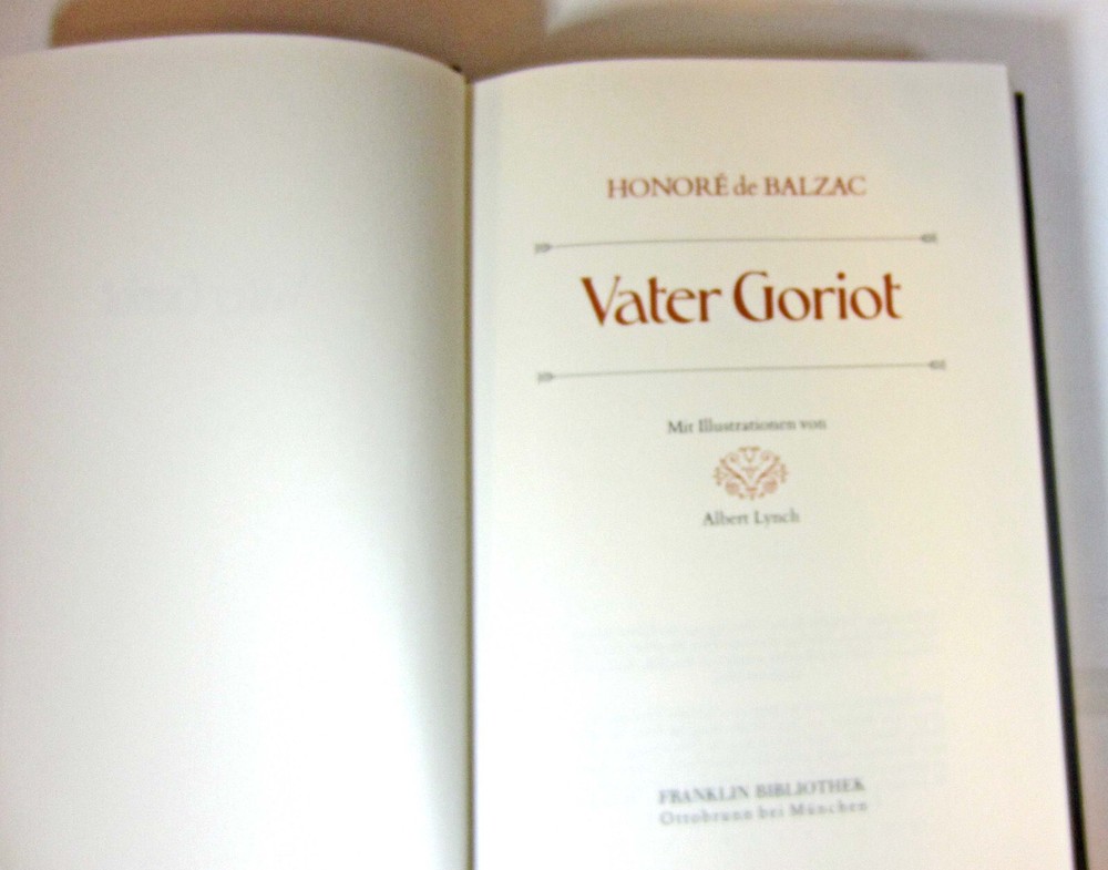 Offered is a quarter leather-bound edition of "Vater Goriot" by Honore de Balzac, published by Franklin Library in 1981. It is written in German and is part of the Franklin Bibliothek Library collection.