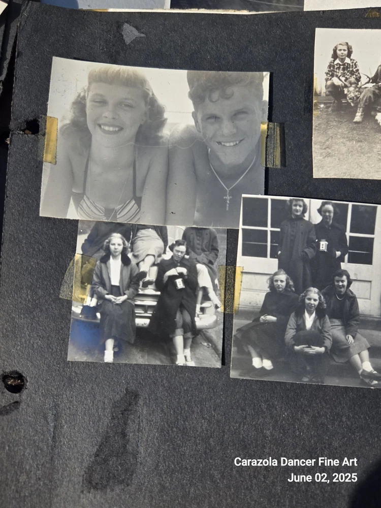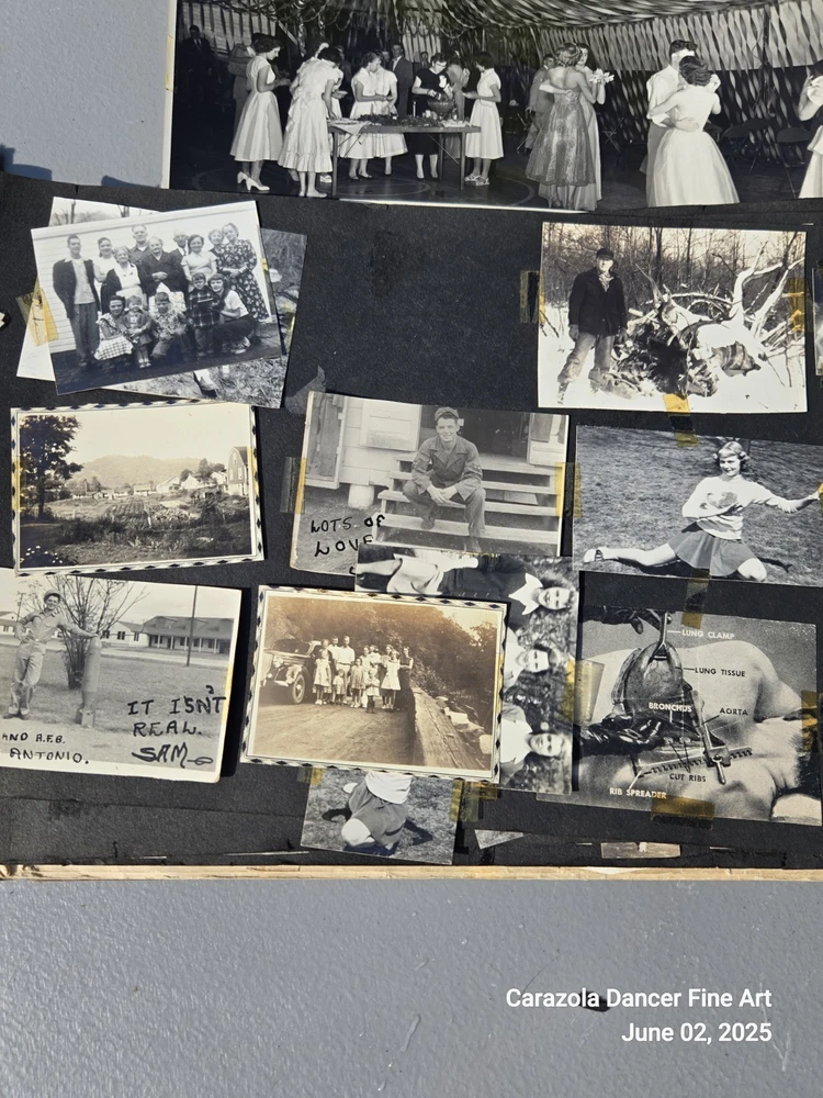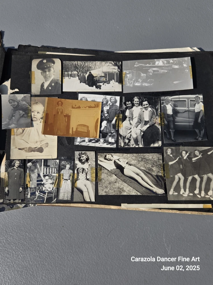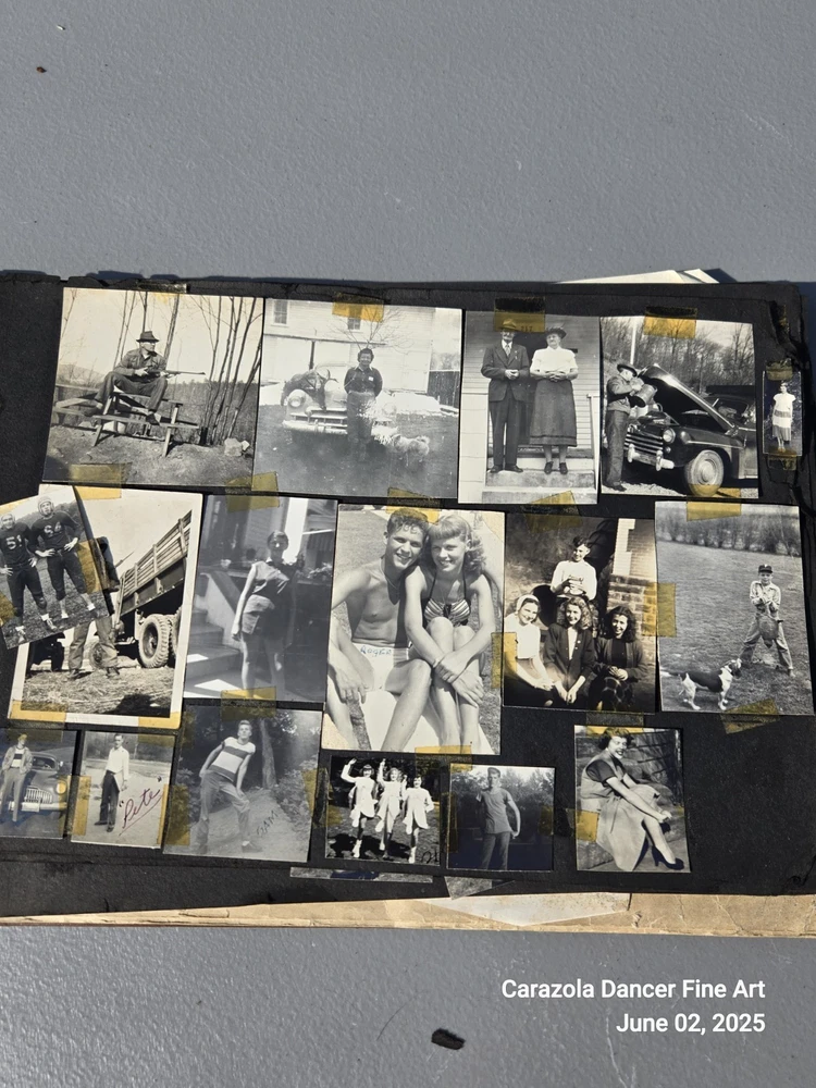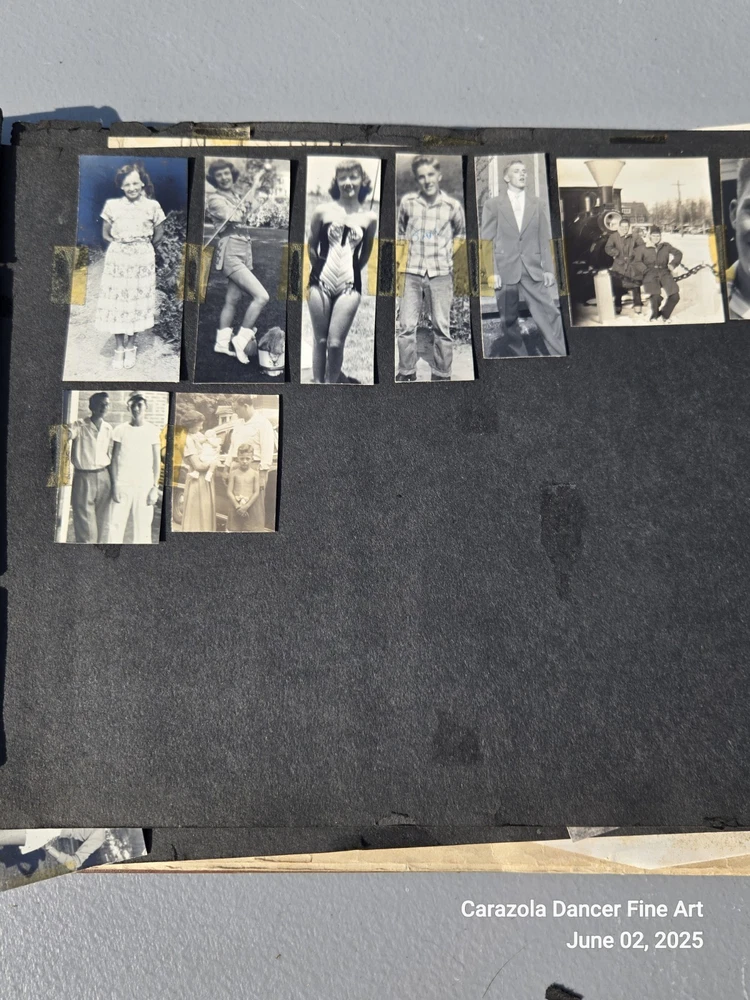 Lot 3, June 2, 2025 Good day everyone we hope all are doing fine today. As can be seen in the pictures, the photograph book is falling apart, it is about 80+ years old. The majority of the pictures are students from a US high school and family related pictures. I believe the time period is from about 1940 through the 1950s. This photograph book has seen better days and a lot of the pictures are loose leaf, not attached and will ship this way. It is a bunch of snapshots of Americana for the time period indicated. End. Thank you for stopping into our sale room today. End. Carazola Dancer