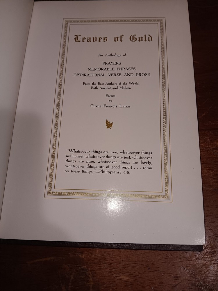 Vintage 1948 Leaves of Gold Anthology by Clyde Francis Lytle Leather Book *READ **Does have some writing in the Front where Org Owner wrote a Christmas**