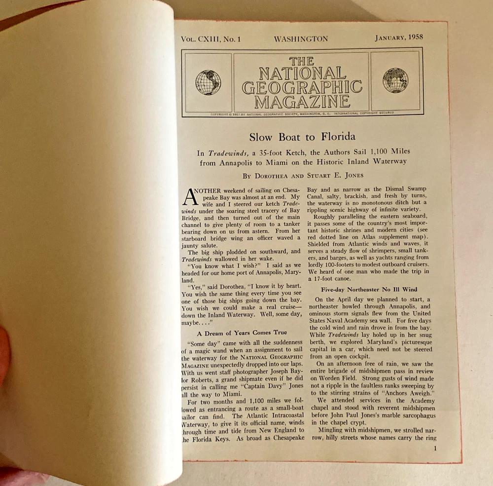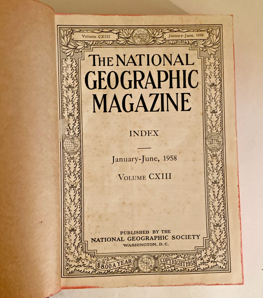 Vintage 1958 National Geographic Magazine Leather-Bound Edition Jan-Jun w/Index