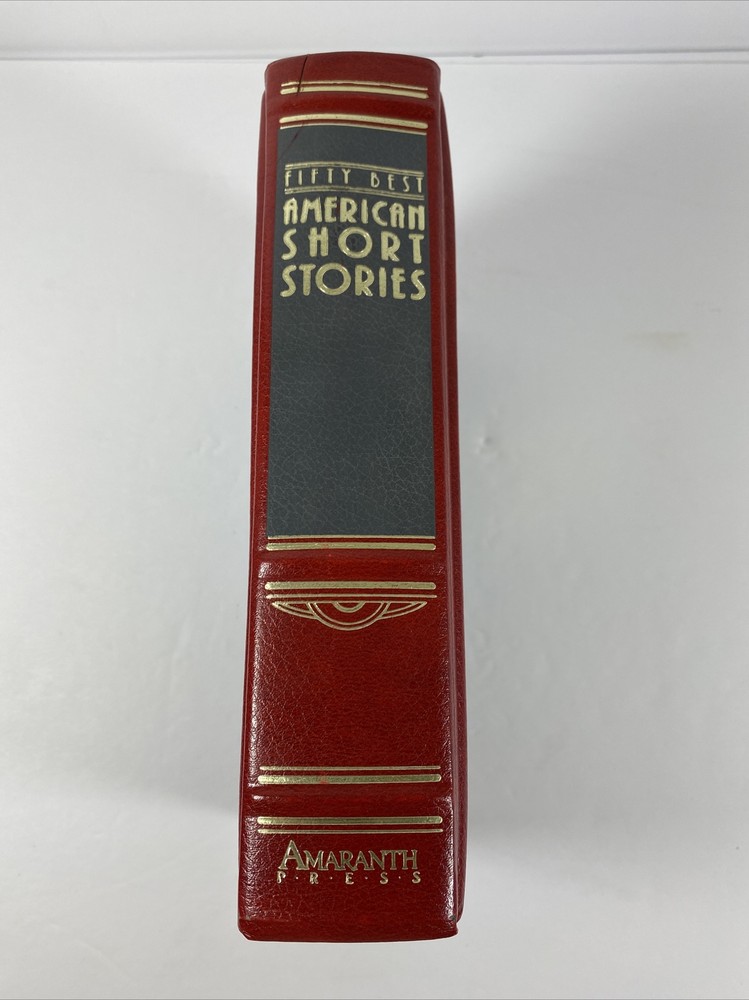 Vintage 1965 Fifty Best American Short Stories Bonded Leather Hardcover Book. Some areas are worn and binding is intact but a little loose from leather cover as pictured. Pages are intact and complete. (Just an older book)