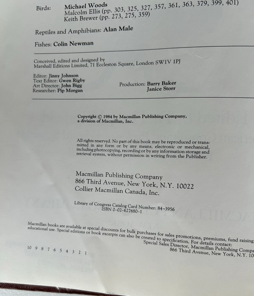 eBay Title: Vintage 1984 Macmillan Illustrated Animal Encyclopedia - Edited by Dr. Philip Whitfield, Foreword by Gerald Durrell - Hardcover eBay Description: A fascinating vintage visual guide to the world's creatures! This is a hardcover edition of the "Macmillan Illustrated Animal Encyclopedia," a comprehensive and beautifully illustrated reference book. Edited by Dr. Philip Whitfield with a foreword by the renowned naturalist Gerald Durrell, this encyclopedia offers a "visual who's who" of animals from across the globe. Published in 1984 by Macmillan Publishing Company, this substantial volume is packed with information and stunning illustrations covering a wide range of animal species. It's a fantastic resource for anyone interested in zoology, natural history, or simply the incredible diversity of life on Earth. Inside you'll find: * Detailed descriptions of numerous animal species, covering their characteristics, habitats, and behaviors. * Beautiful illustrations that bring each animal vividly to life. * Contributions from various experts in the field, including Michael Woods (Birds), Malcolm Ellis (Birds), Keith Brewer (Birds), Alan Male (Reptiles and Amphibians), and Colin Newman (Fishes). * A foreword by the celebrated zoologist and conservationist Gerald Durrell. * A comprehensive overview of the animal kingdom, making it a valuable reference tool. This vintage encyclopedia is a wonderful addition to any library, whether for educational purposes or simply for the joy of exploring the animal world. It's a testament to the knowledge and appreciation of Earth's diverse fauna. Condition: This book is in good vintage condition. As it was previously part of the Wake County Public Libraries (Raleigh, NC), there may be some library markings (as seen in the photos). The cover shows some signs of wear consistent with age and previous use. The pages are generally clean and intact, but please review the photos carefully for details. The binding appears to be intact, though there is some visible mesh in the hinge area (as pictured). Year Published: 1984 Edited by: Dr. Philip Whitfield Foreword by: Gerald Durrell Publisher: Macmillan Publishing Company Format: Hardcover ISBN: 0-02-627680-1 Library Markings: Yes, from Wake County Public Libraries Don't miss this opportunity to own a piece of natural history reference! This Macmillan Illustrated Animal Encyclopedia is a treasure trove of information and beautiful imagery.