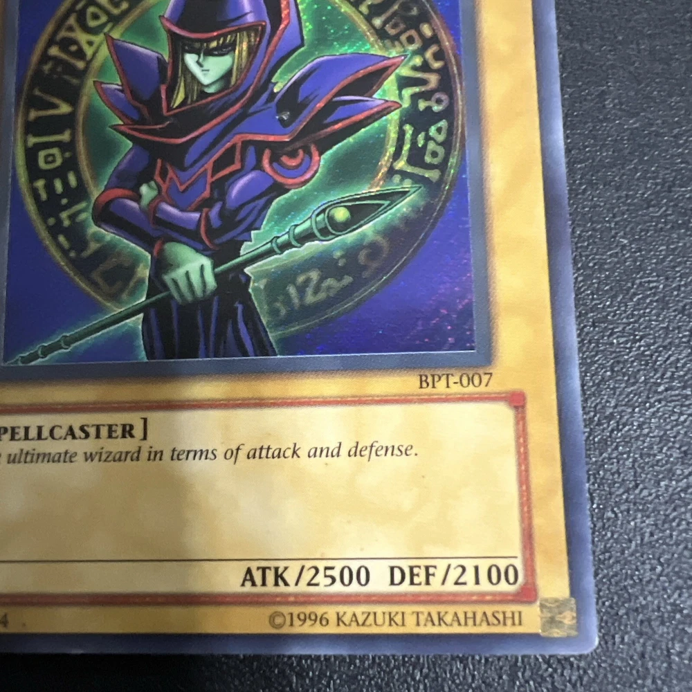 Experience the nostalgia with the classic 1996 Yu-Gi-Oh! TCG Dark Magician card, a must-have for collectors and duelists alike. Featuring the iconic holographic finish, this card showcases the enigmatic Dark Magician in vibrant detail, a sight that brings back the spirit of the game's early days. With card number BPT – 007, this piece of history is a rare find from the English-language set, perfect for rounding out your collection or adding a touch of vintage flair to your deck. Cherish the allure of one of the most beloved spellcasters in the Yu-Gi-Oh! universe. Best offer wanted!! The listing price is just a number. Your offer is most important so please do not hesitate to give me your best offer. Thank you for your interest. God bless!