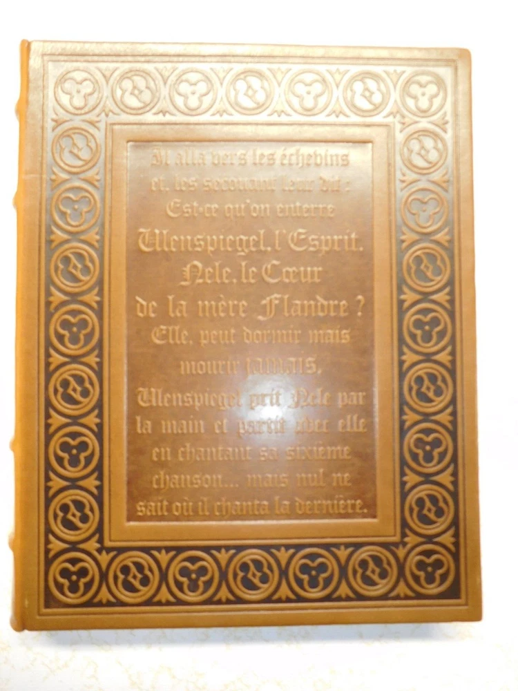 Experience the beauty of French literature with this vintage 3 volume set of "The Legend of the Beggars" or Ulenspiegel. The finely leather bound books are a true masterpiece and come boxed for optimal protection. This facsimile edition by latin Publishing Union, Paris, is a must-have for any book collector or lover of fiction. The set covers the fascinating topic of sets and is a great addition to any antiquarian and collectible book collection. The books are in excellent condition, ready to be added to your personal library. Don't miss out on the opportunity to own this timeless classic. Set measures 4-3/4" x 10" x 7-3/4".