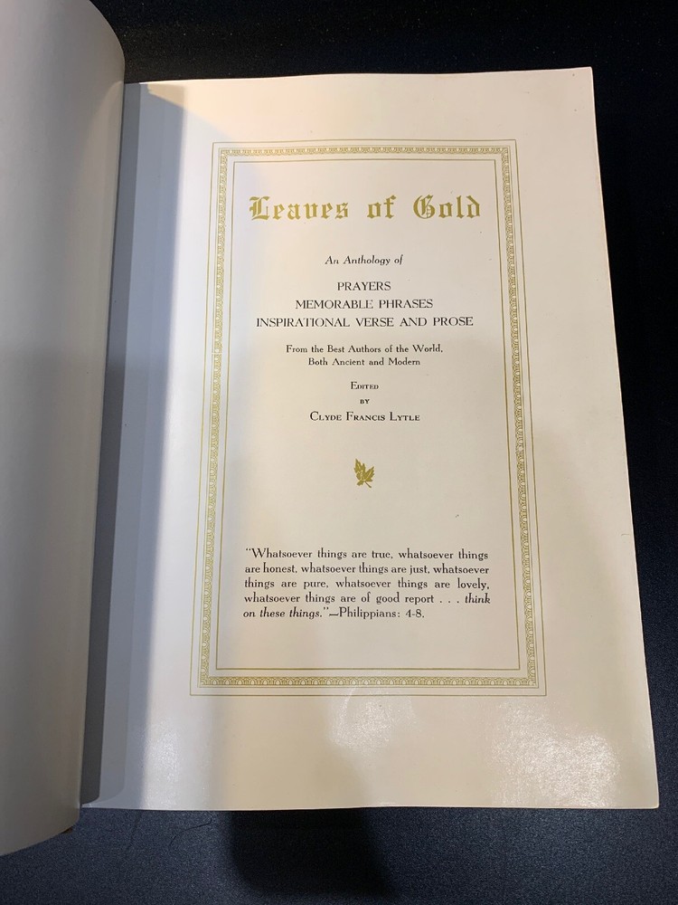 Vintage Book “Leaves Of Gold” Prayers, Phrases, Inspiration & Prose 6th - 1957. Shipped with USPS Media Mail....