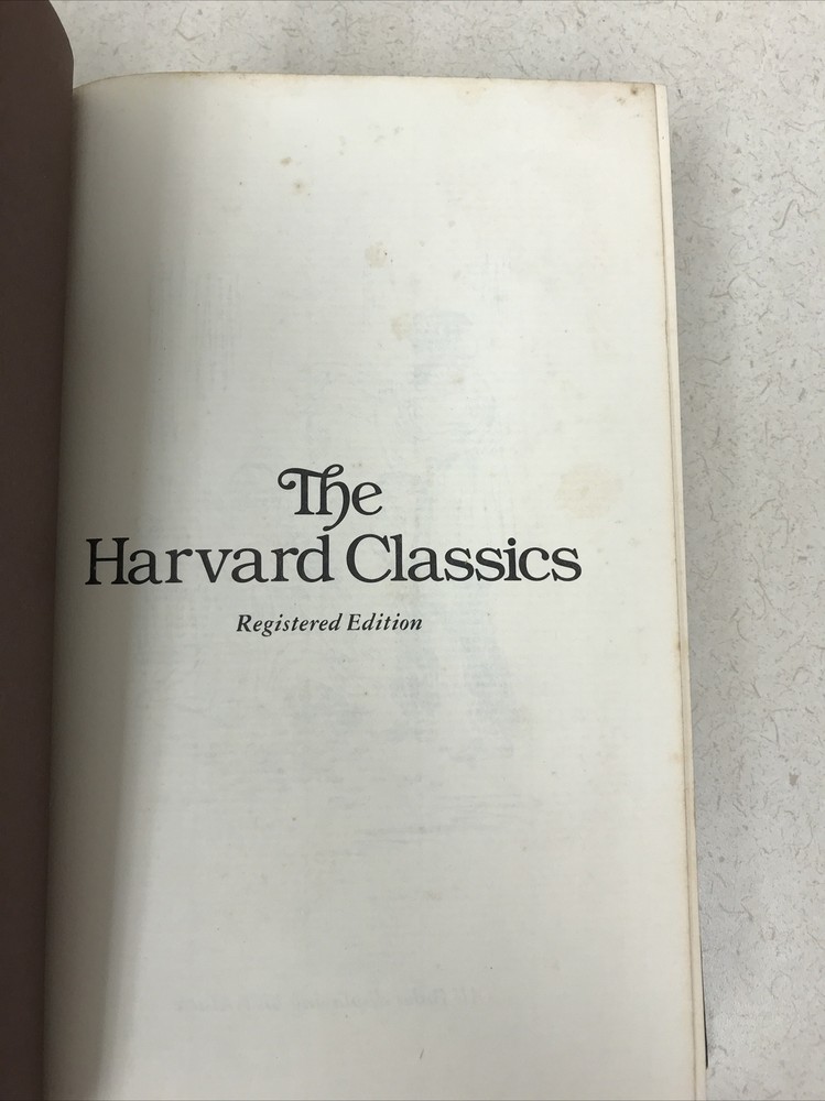 The Harvard Classics 1980 Collectors Edition. Good Condition See photos Sturdy spine, clean pages. Signs of age and wear on spine (see pics.) Personalized embossing on first page (see pic.) Some spotting on the first few pages. The rest are clean. See pics.