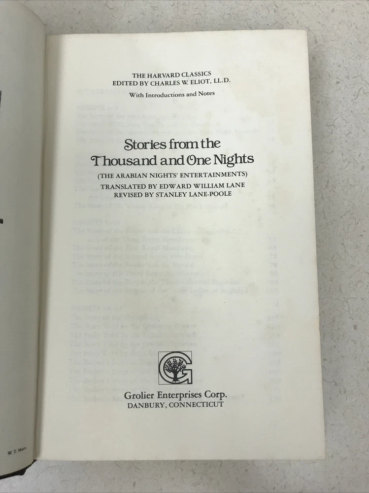 This vintage Harvard Classics edition of *Stories from the 1001 Nights* is a beautiful collector's piece! The spine is sturdy, pages are clean, and despite some age-related wear and spotting on the first few pages, it's in great condition. The embossing adds a unique touch—perfect for any classic literature lover!