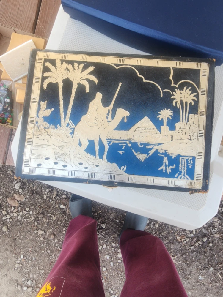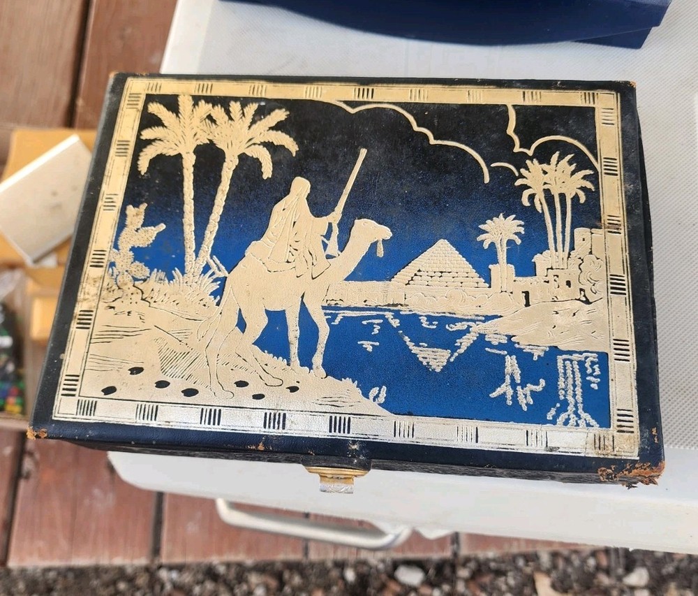 This vintage Egyptian camel leather jewelry box is absolutely stunning! The rich leather and velvet lining give it such a luxurious, old-world charm. The natural wear adds character, making it feel like a true heirloom. Perfect for storing jewelry, cigars, or small treasures—so unique and full of history. Love that it accepts offers too—great value for such a rare piece!