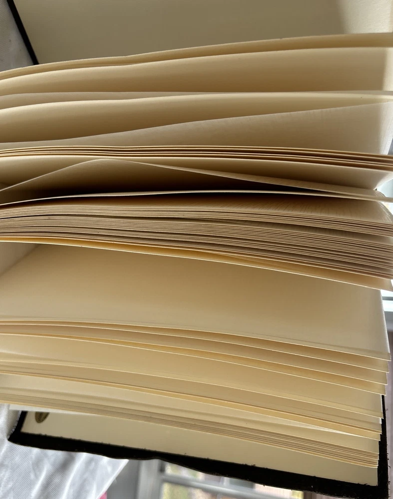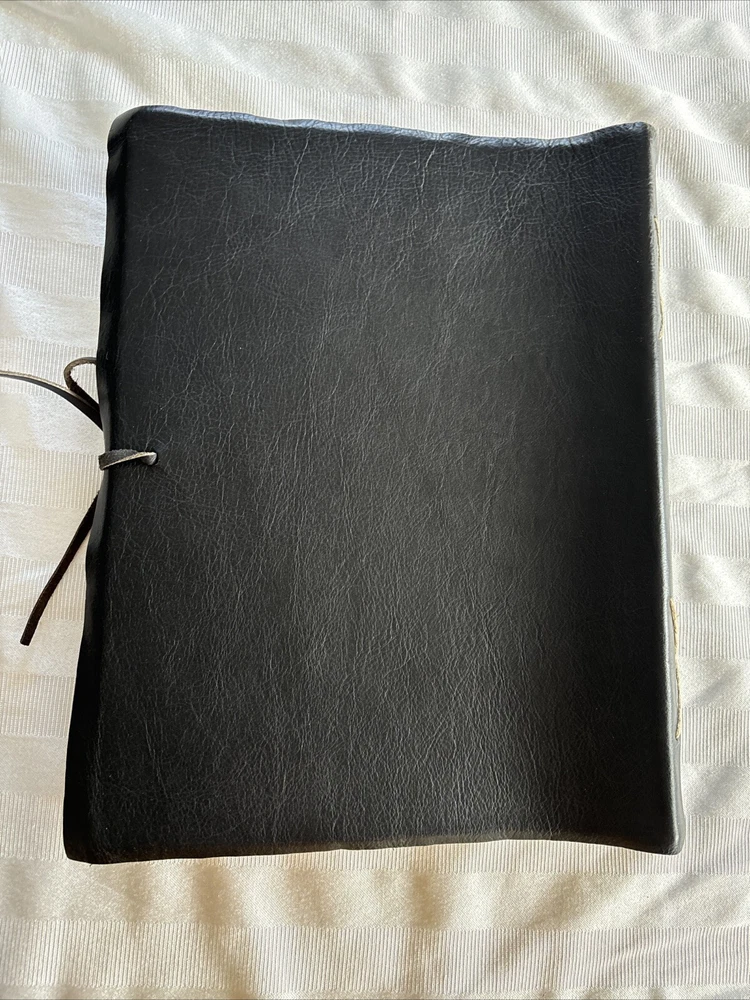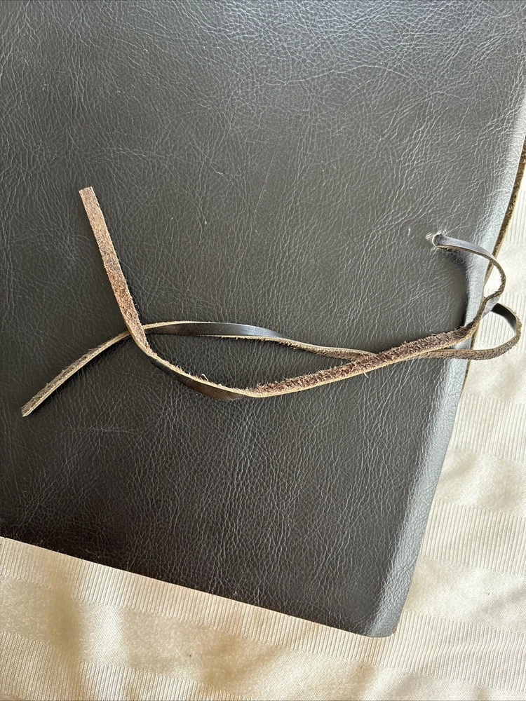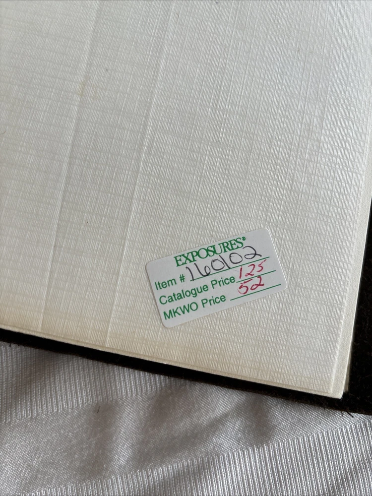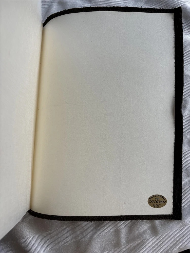 This exposures album is vintage from 1980s Overall, very good condition Top cover does have a very thin little line on it- subtle little cut— not overly noticeable unless you’re scrutinizing It’s kind of in the middle of the book we disclose every little detail Last photo Beautiful leather made in Italy Has blank pages with parchment paper sheets in between 50 pages of each This album measures approximately 12 inches high by 10 inches wide The outside cover is a beautiful, deep brown almost looks black super soft leather The soft leather raw edge does have a few little leather fuzz’s on the pages that can be wiped away From storage, you can see there’s a little curve in the book. With use should even out. This is new old stock. It has never been used. Clean smoke-free home