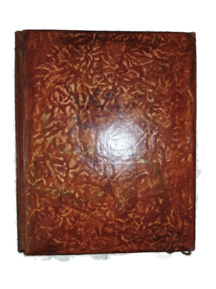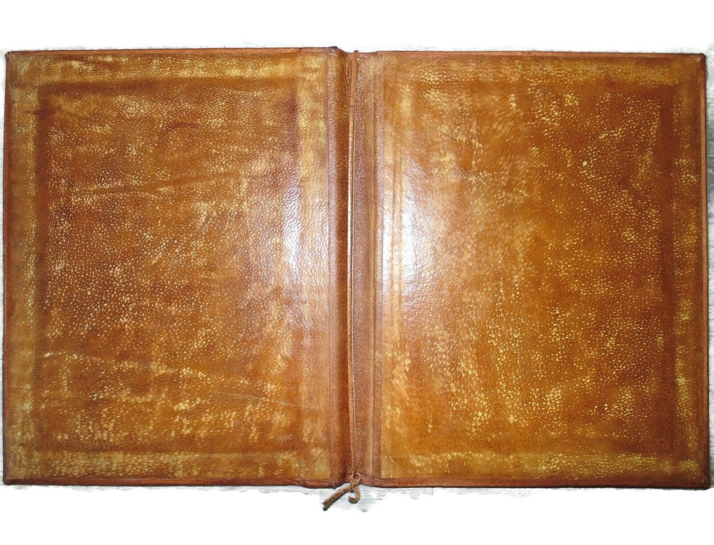 Item Description Measurements: 12 inches wide by 15 inches tall, can fit up to 1 inch insert - Menu, Portfolio, Marriage Certificate, Sign In Sheets, Pictures, Special Certificate, Paper Memorabilia Cover Hard Book in all Leather. c 1970 Authentic item. Used in Balkan Area of Bulgaria, Sofia. Hard cover leather. Brown, tooled. With Massive Brass Crest in the center, 3 lions. Fine Artisan hand crafted work. Can be used for storing art or journals or magazines or small format book Leather inside in brown color Pre-owned. Used, With very little Signs of Wear and Tear USA Shipping 4.99 FLAT FEE INTERNATIONAL SHIPPING WORLDWIDE WITH TRACKING NUMBER