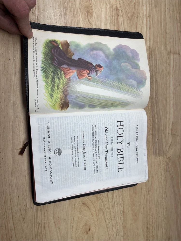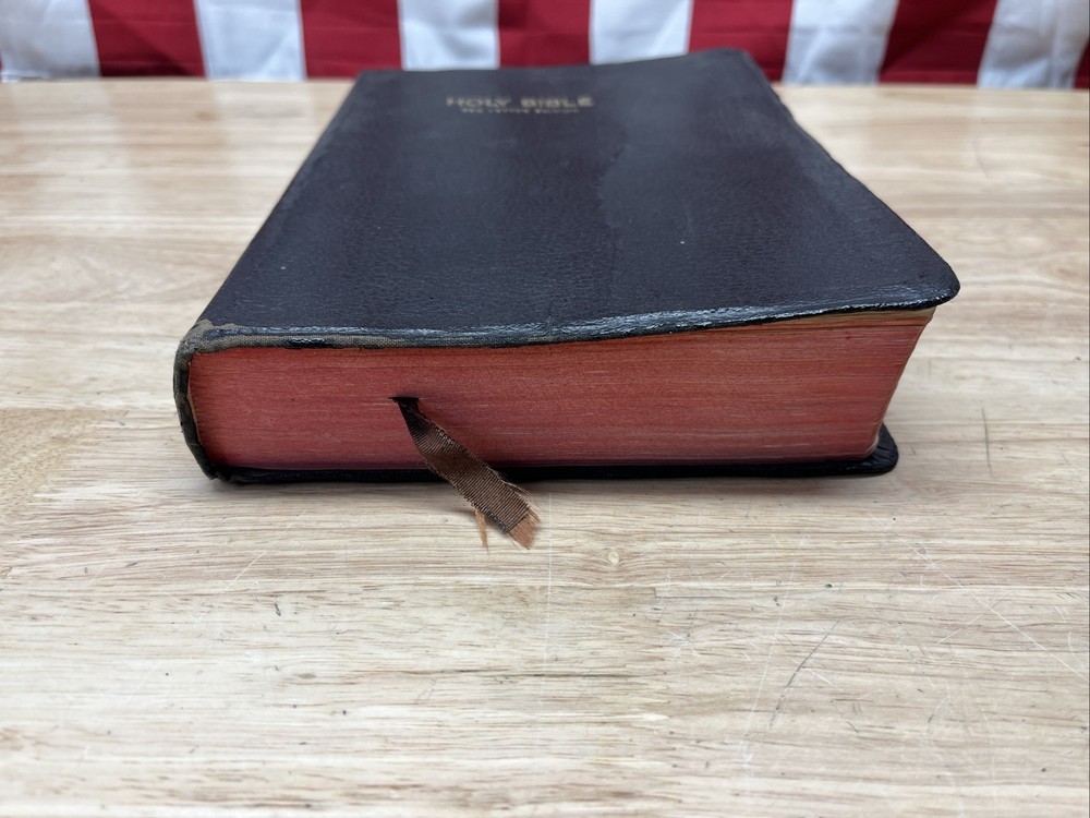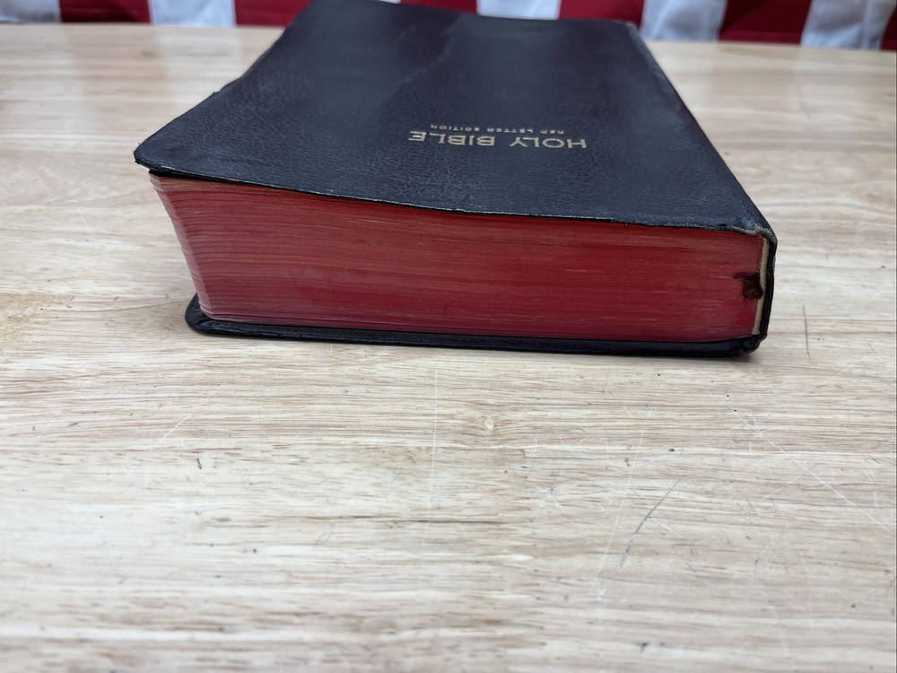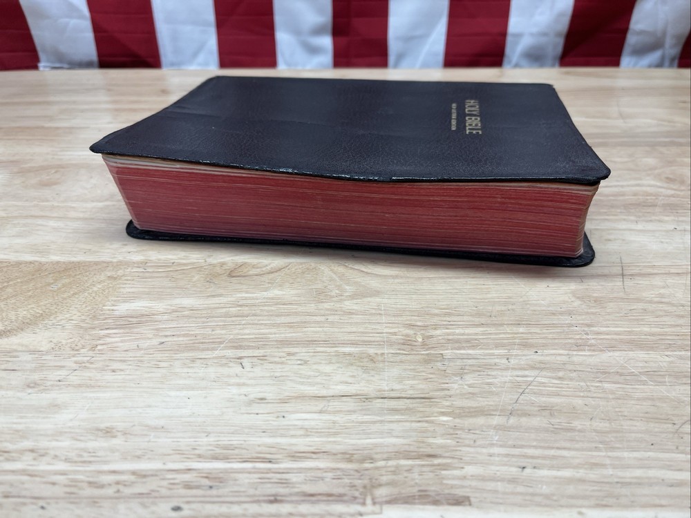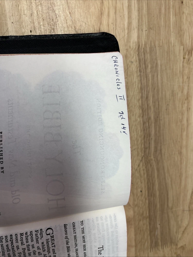 Bible is in used condition. It does have a name in the front and a small amount of writing on one of the front pages on top. A looked through the book. It appears to be in good condition. I did not see any other writing other than in the front. I may have missed something. I did not check every page individually. It does have a small crease on the front cover.