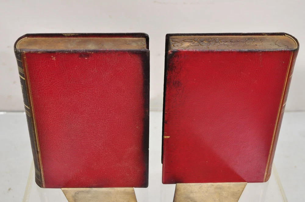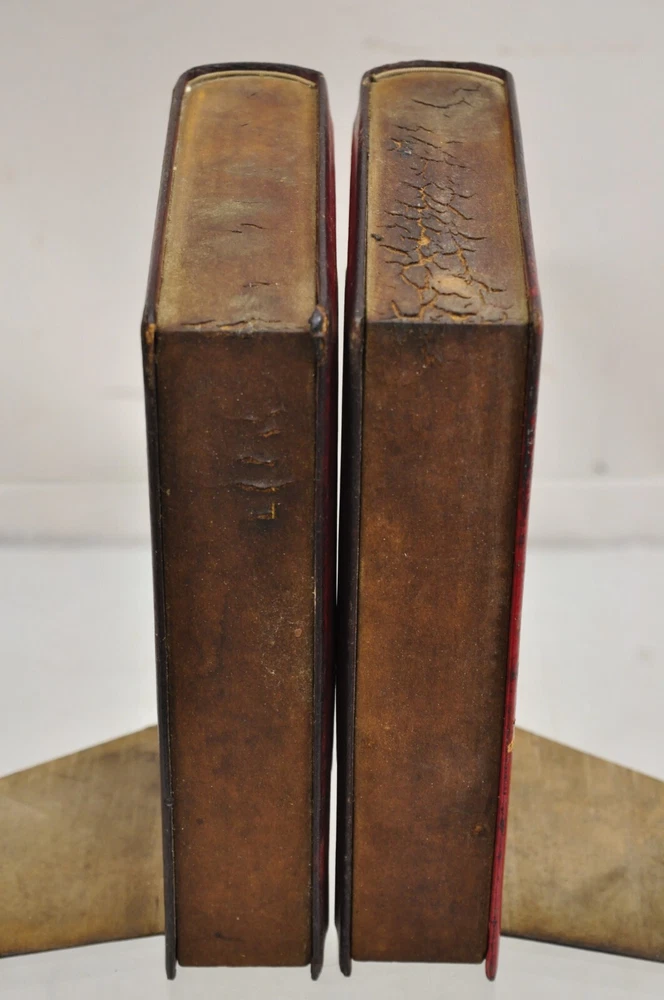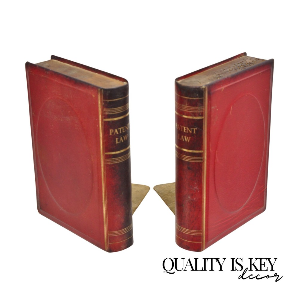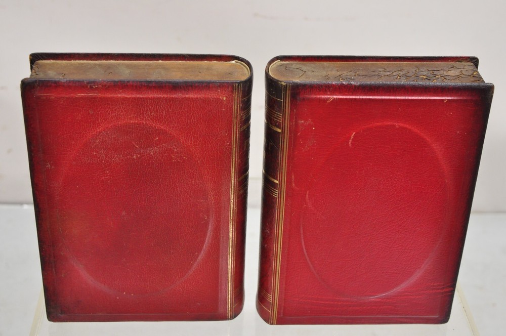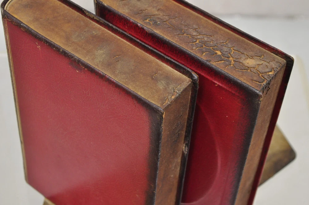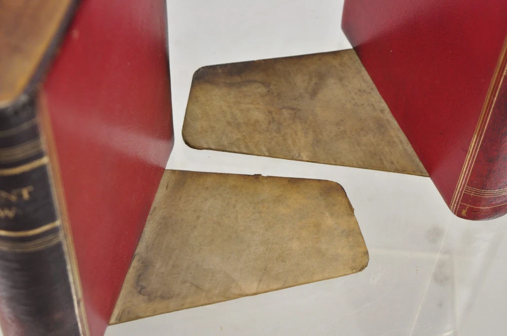***PLEASE READ THE ENTIRE LISTING*** Item : Vintage Italian Red Leather Bound "Patent Law" Faux Book Bookends (D) - Pair Details : Leather-bound faux book form, gold gilt details, nice larger size, original aged/distressed finish, very unique vintage bookends Age : Early 20th Century Measurements : 9.5 " H x 7.25" W x 7" D. Book alone is 2" W Condition : Discoloration and wear to leather with examples pictured. Desirable distressing. Good vintage condition being structurally sound with age appropriate signs of normal use as pictured. Overall very nice. Please review all images as they are considered part of the item description. Please keep in mind that we offer vintage and pre-owned items that can show normal signs of use including some surface scratches and dings.