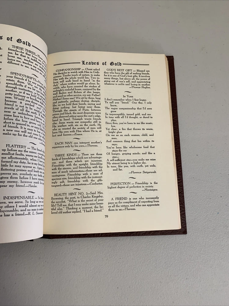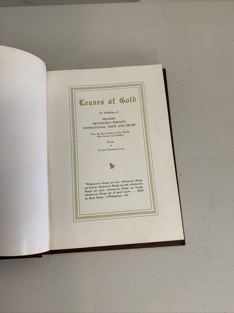 Vintage Leather Bound HB Book Leaves of Gold 1948 Prayers Religious Phrases...