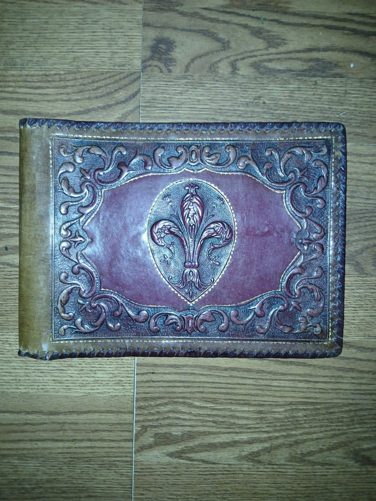 This vintage album is embossed with the fleur de lis on the front with gold painted accents still visible despite the age. Although the album isn't dated, it is estimated to be 75 to 100 years old. The album itself measures approximately 12"x9". It contains 9 pages for pictures or whatever you would like to feature in it. The interior of the album is bound in a silk-like material. If you have any further questions, please feel free to reach out! Thank you for viewing my auction, and God Bless!
