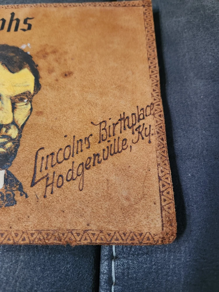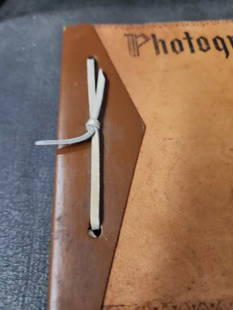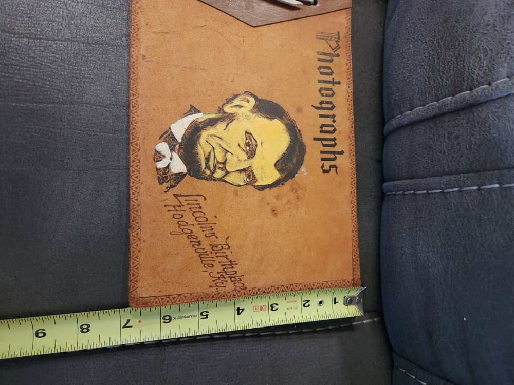 This is a old photo album with 12 double sided unused pages. It's in great condition. The cover is leather and may have been hand painted. It measures about 9 1/2 inches wide and 7 inches tall . Just a cool little photo album. Thanks for looking