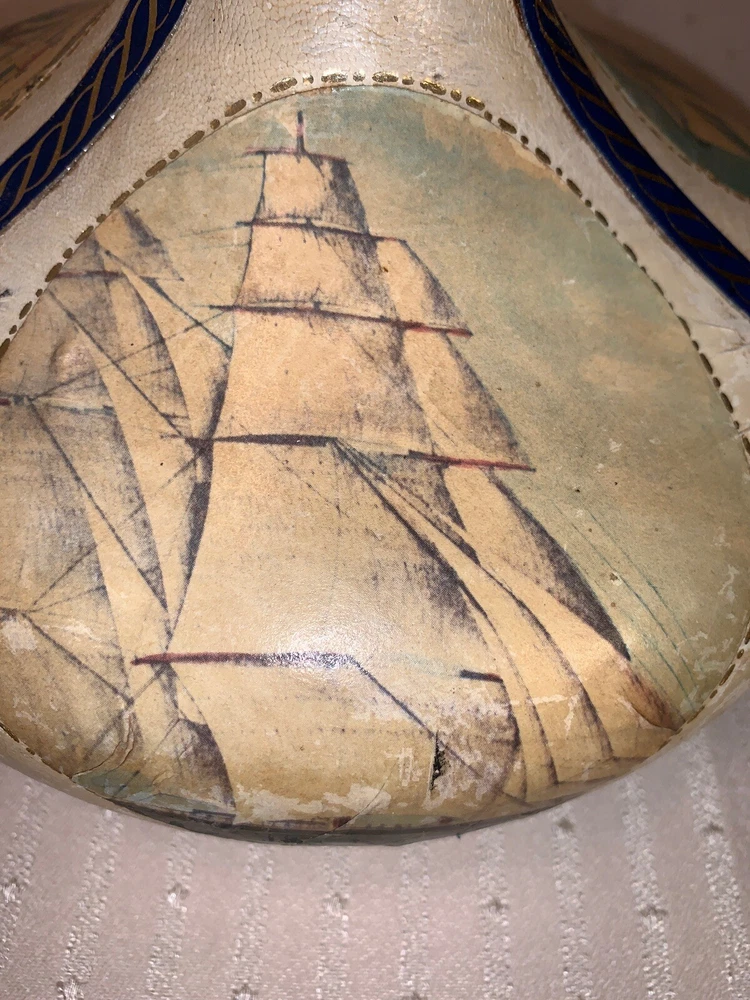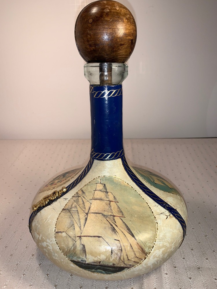 This vintage leather-bound decanter is stunning! The nautical Italian design gives it so much character, and it’s in great condition—no cracks or chips, just missing a small gold accent. The cork seals tightly, and the 11” height makes it a striking display piece. Shipped fast and secure—highly recommended for wine lovers or collectors!