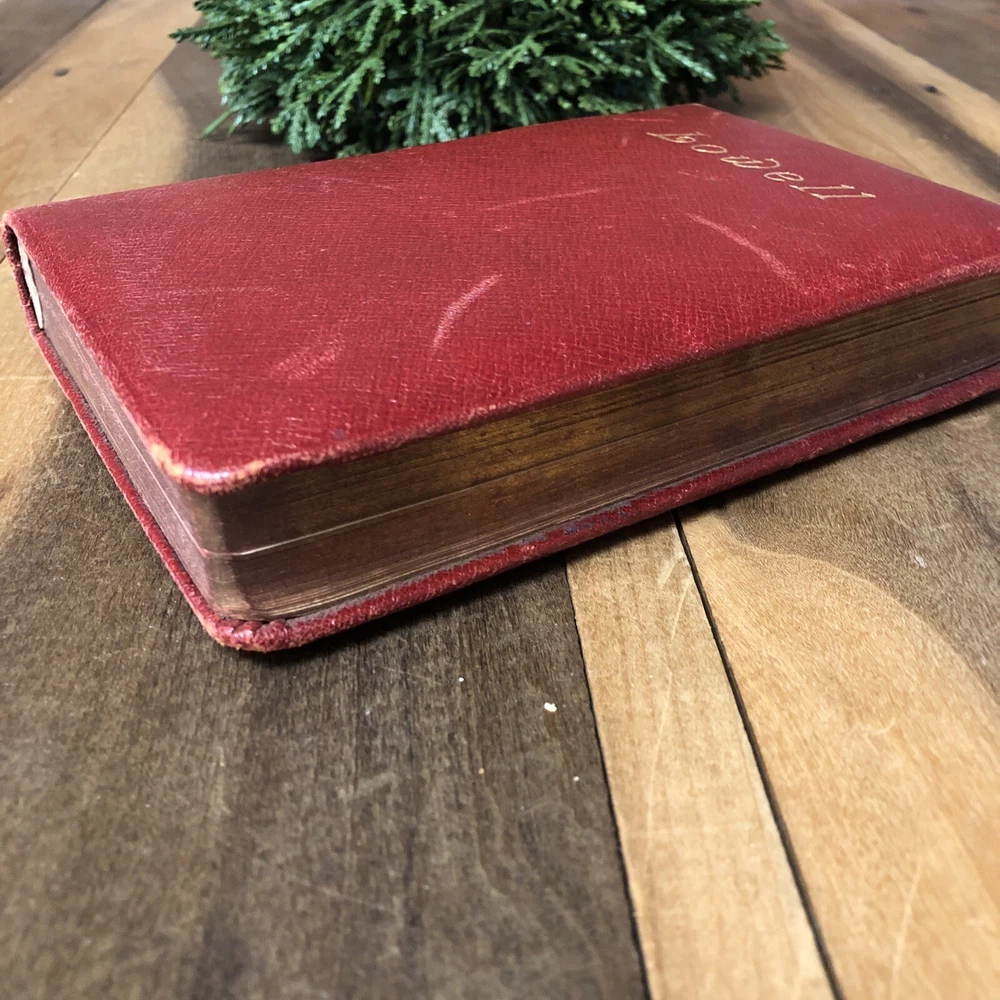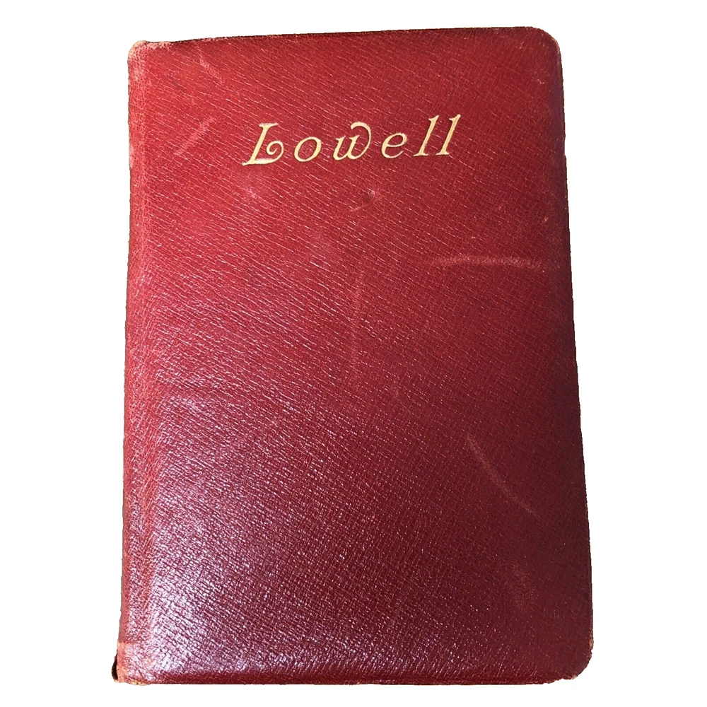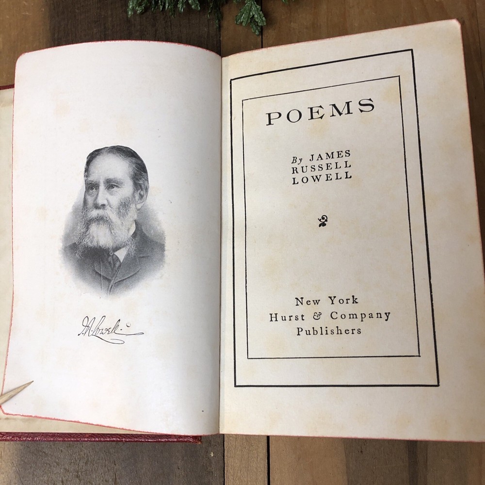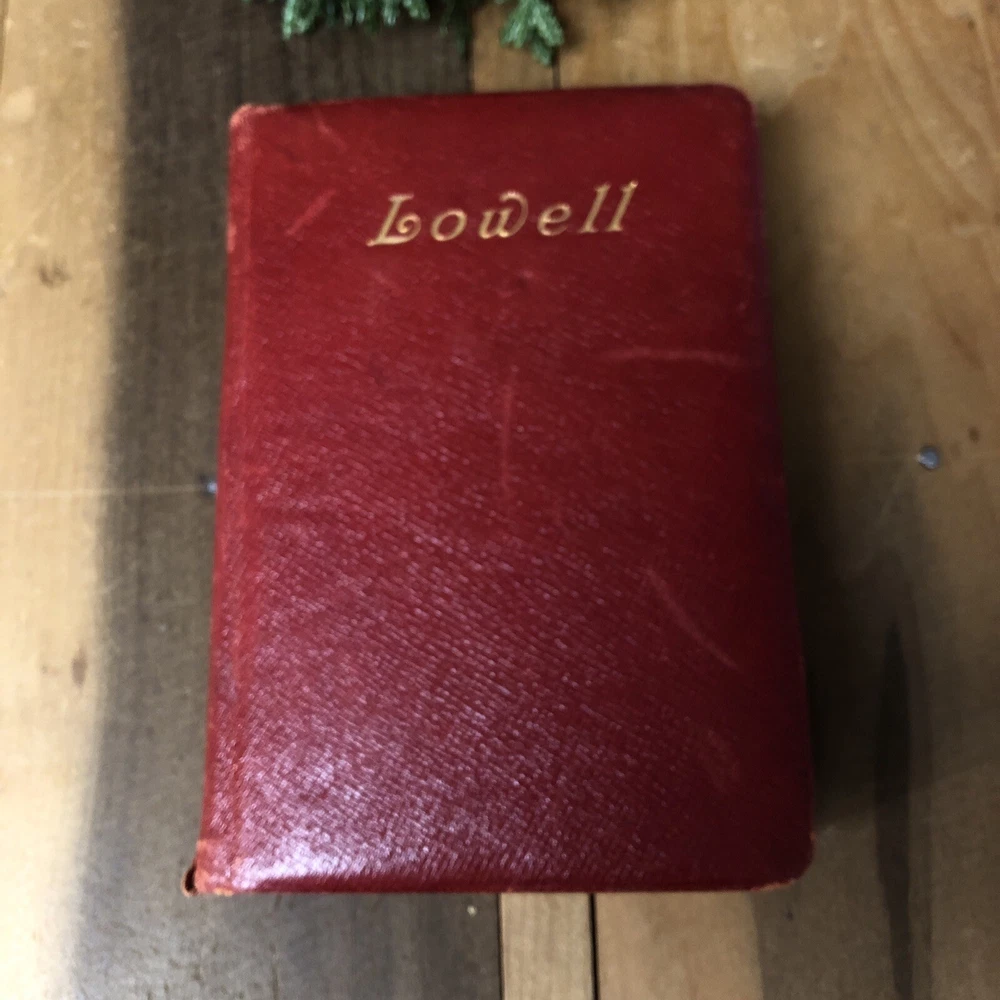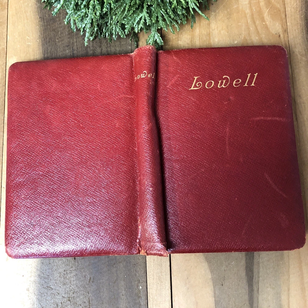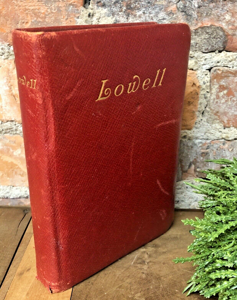 Vintage Leather Poetry Book Gilt Edges POEMS by James R Lowell Antique 1916 Offering an Antique Book titled, "POEMS" by James Russell Lowell as pictured. Condition notes listed below. Red Leather Binding Gilt Page Edges 323 pages measures about 7" x 5" weighs about 15 oz no copyright date but inscription in front is dated '16 ... assuming 1916 worn and torn leather binding significant wear to edges and corners writing and stains inside front/back boards fraying inside front board buying as is, as pictured, issues noted