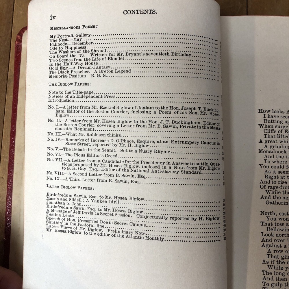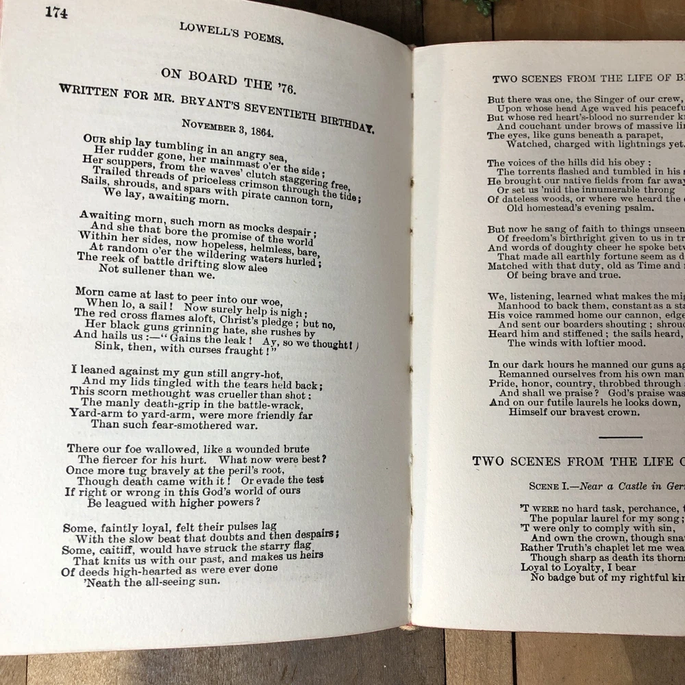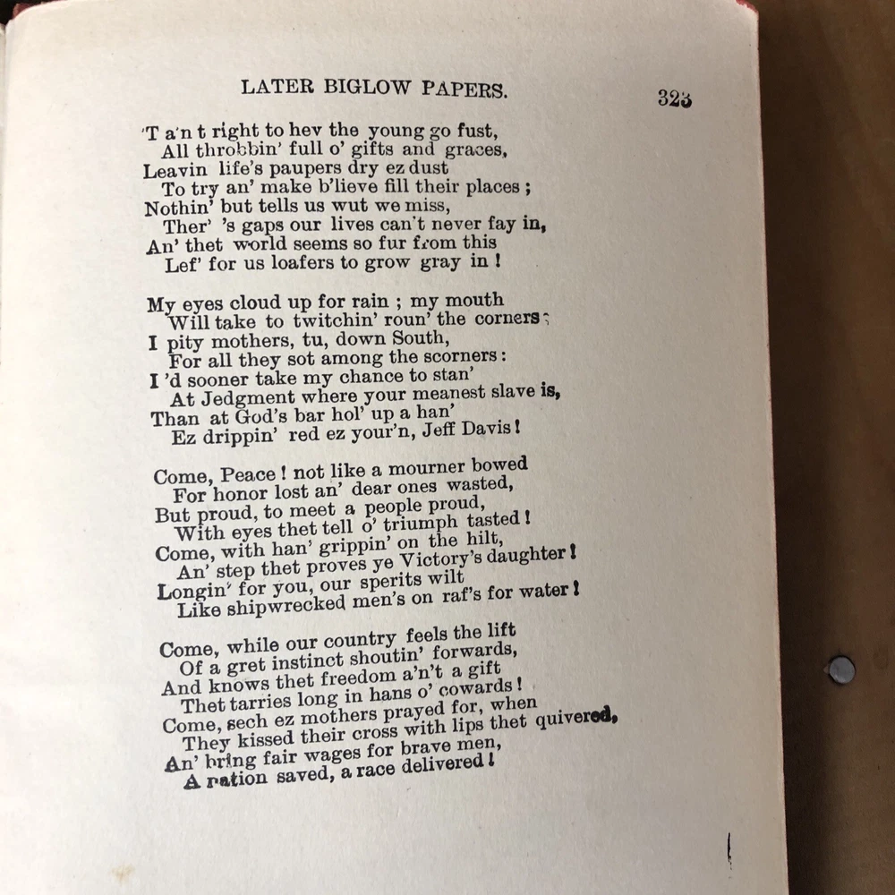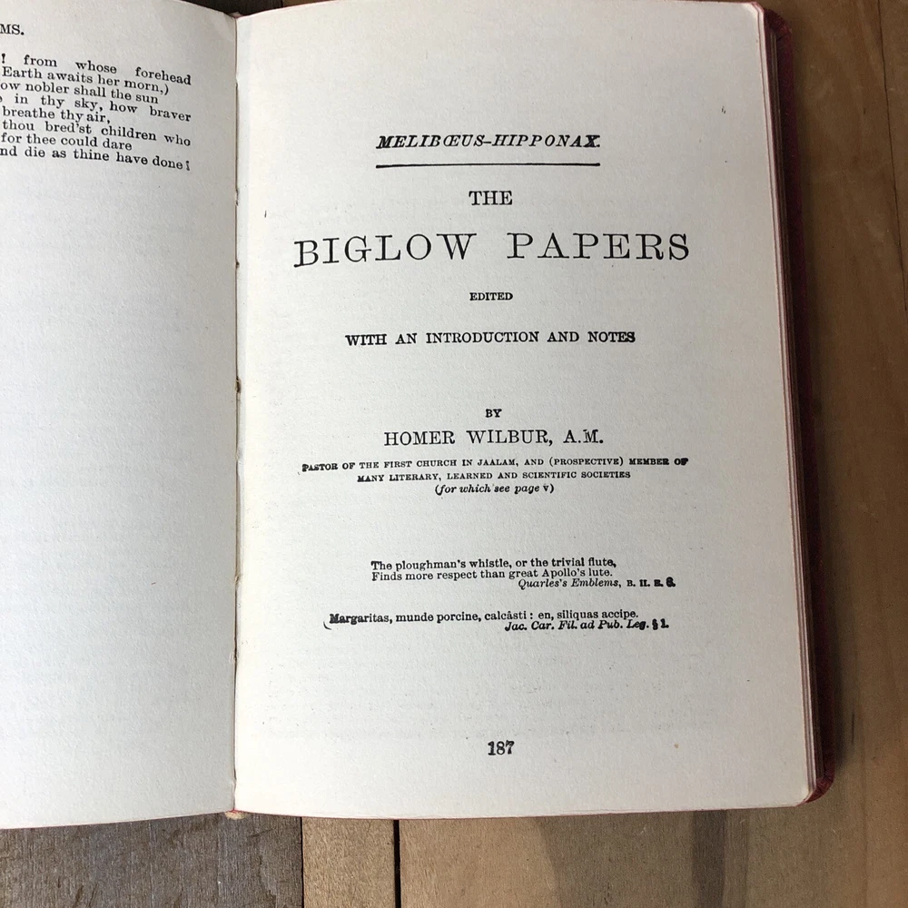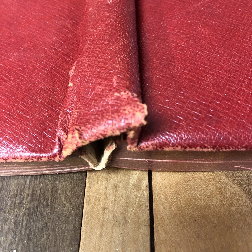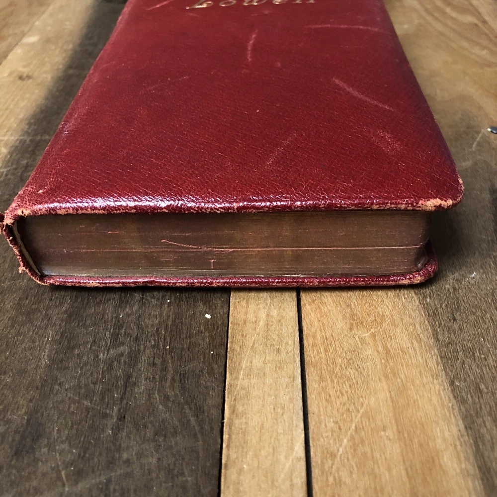 Vintage Leather Poetry Book Gilt Edges POEMS by James R Lowell Antique 1916 Offering an Antique Book titled, "POEMS" by James Russell Lowell as pictured. Condition notes listed below. Red Leather Binding Gilt Page Edges 323 pages measures about 7" x 5" weighs about 15 oz no copyright date but inscription in front is dated '16 ... assuming 1916 worn and torn leather binding significant wear to edges and corners writing and stains inside front/back boards fraying inside front board buying as is, as pictured, issues noted