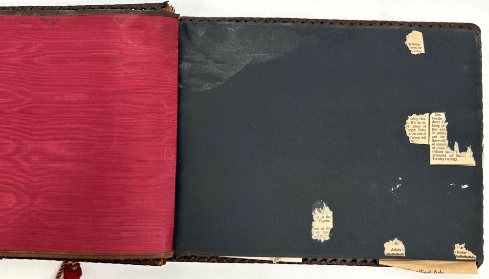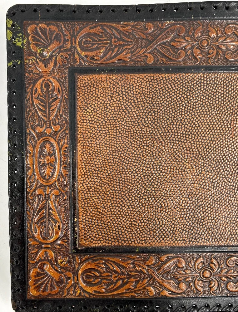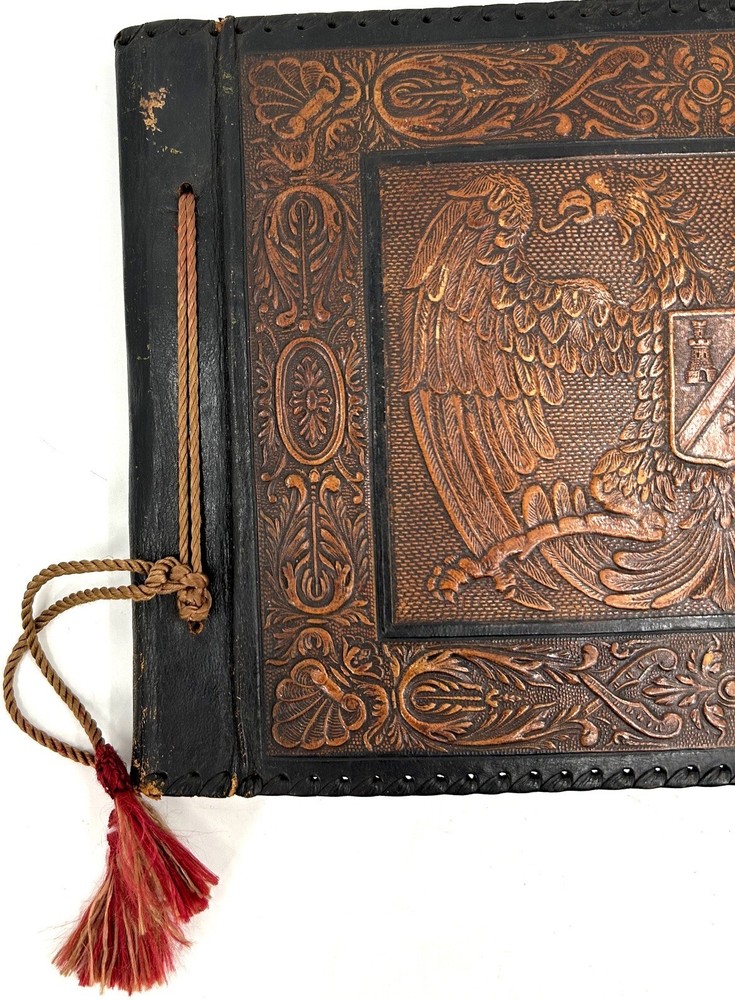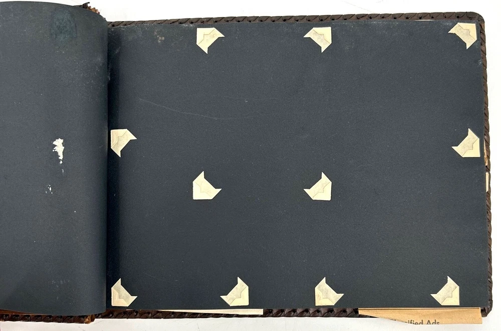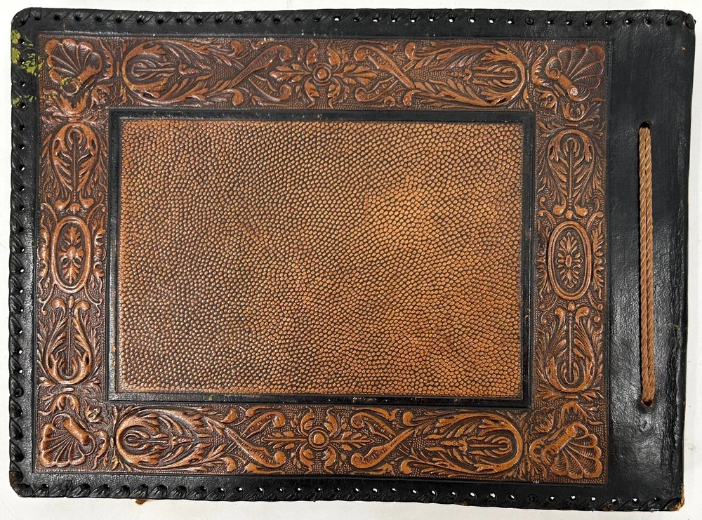 Nice unique leather bound photo album in good condition. There are some pages that have photos and cut outs in them shown in pics. Rest of the pages are empty. The leather has some minor marks detailed in pics and on the inside in top corner there looks to be a faint stain all detailed in pics. Still a very and unique album. Measures 12.25"x 9". Please review pics and feel free to reach out with any questions. Photographed is the actual item you’ll receive Via United States Postal Service (USPS), FedEx or UPS with FREE Tracking Number. Please submit your payment no later than (2) days after commitment to Buy It Now, an Accepted Best Offer or Winning Bid. Item is located in Saratoga Springs, NY USA. Ships to worldwide or I do offer free local pickup. Domestic (30) Day Returns accepted if Not Completely 100% Satisfied; just send back the item in the same condition and in original packaging if purchased new. Contact me with any problems with your purchase upon package arrival before leaving eBay feedback, Bid/Buy with confidence. Thanks for Looking, We invite you to take a look at more unique items in my store Wilmington Treasures!!!